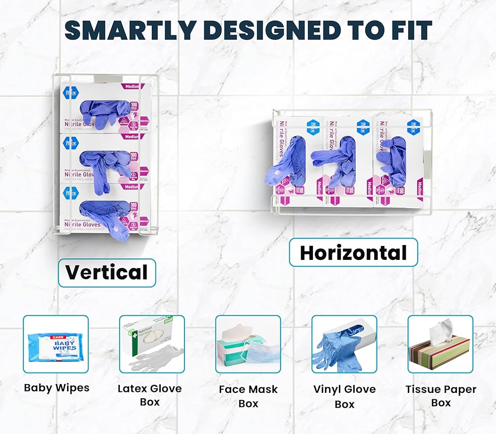 • EASY INSTALLATION. You can attach the glove dispenser onto any wall, cabinet or flat surface in no time. Equipped with keyholes for quick and easy installation, it can also be mounted either vertically or horizontally for added convenience.