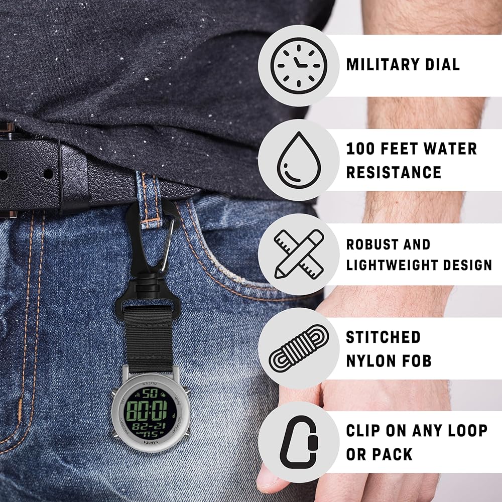 TOUGH CONSTRUCTION: Metal cased clip on pocket watches are ideal outdoor tools for hiking, camping, hunting, fishing, golf, backpacking, travel, or other adventures.