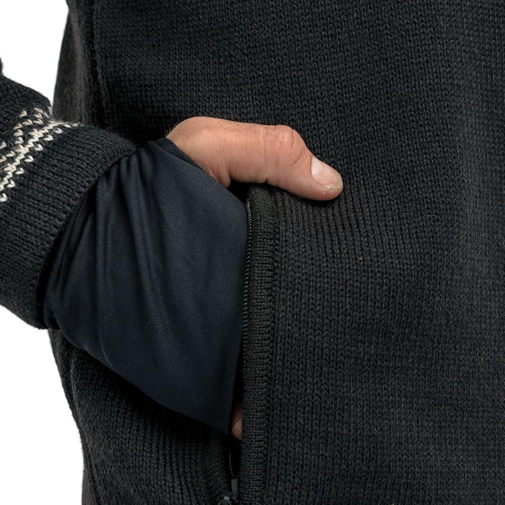 NORWEGIAN DESIGN: This sporty & weatherproof sweater has a breathable windproof liner, soft cuffs, & two zippered front pockets; Wool keeps warmth in & allows moisture to escape