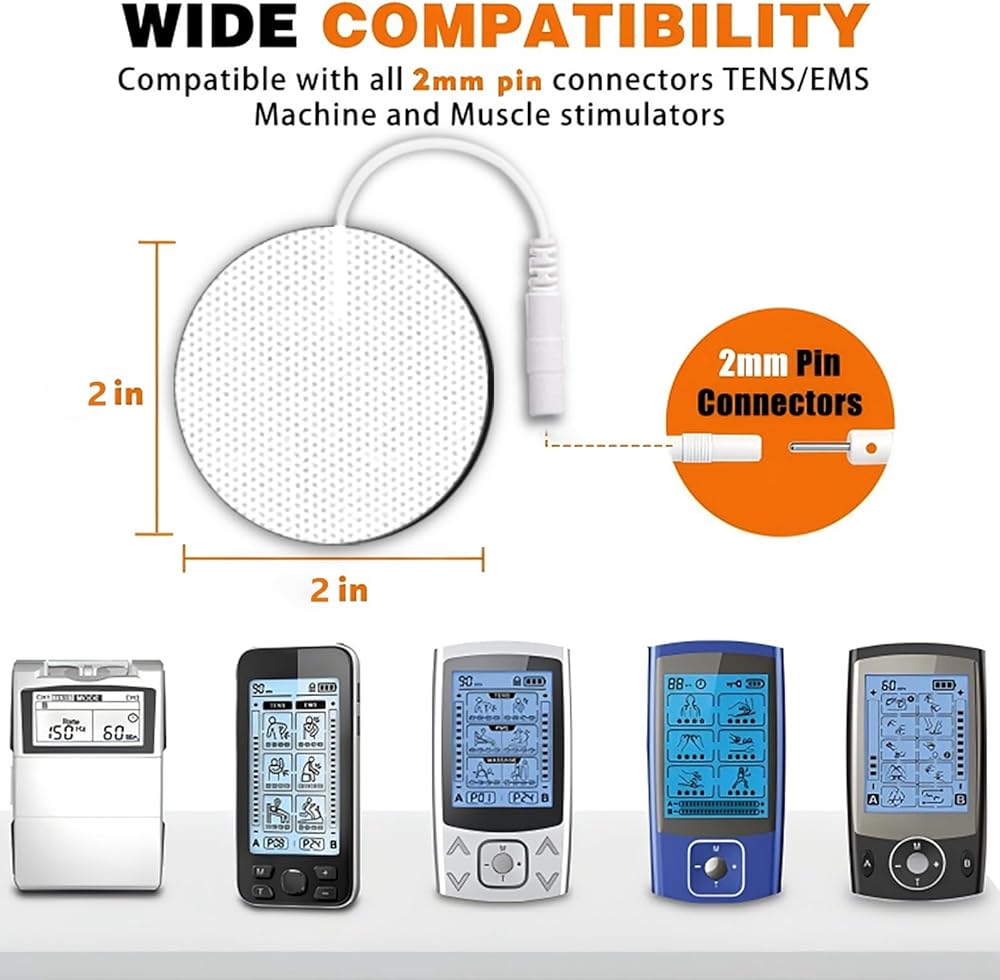Electrodes Connector: TENS pads use commercially available standard 20 mm pin-in connectors The premium carbon electrodes provide superior high conductivity, making it easier to find compatible muscle stimulators and accessories