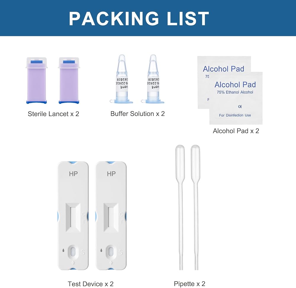 H Pylori Test Kit – 2 PCS at-Home Helicobacter Pylori Self-Test with 99.9% Accuracy – Fast Results in 10-15 Minutes, Easy to Use, No Lab Visit Required