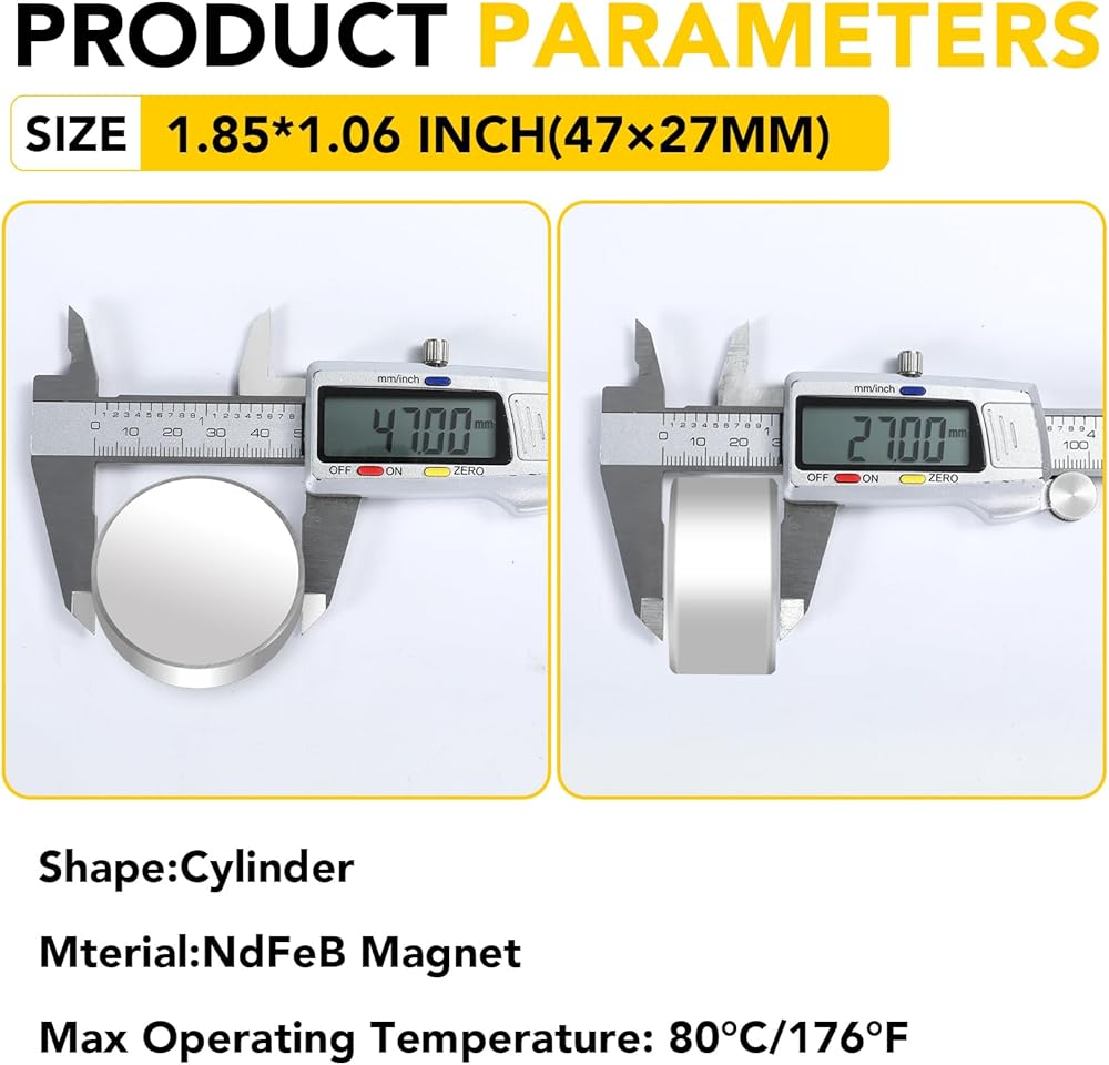 LARGE SIZE: Diameter 40mm x thickness 20mm(approx.1.57"x0.79" ).Tolerances: ±0.2mm x ±0.2mm. Stronger magnetic properties and wider applications than ordinary magnets