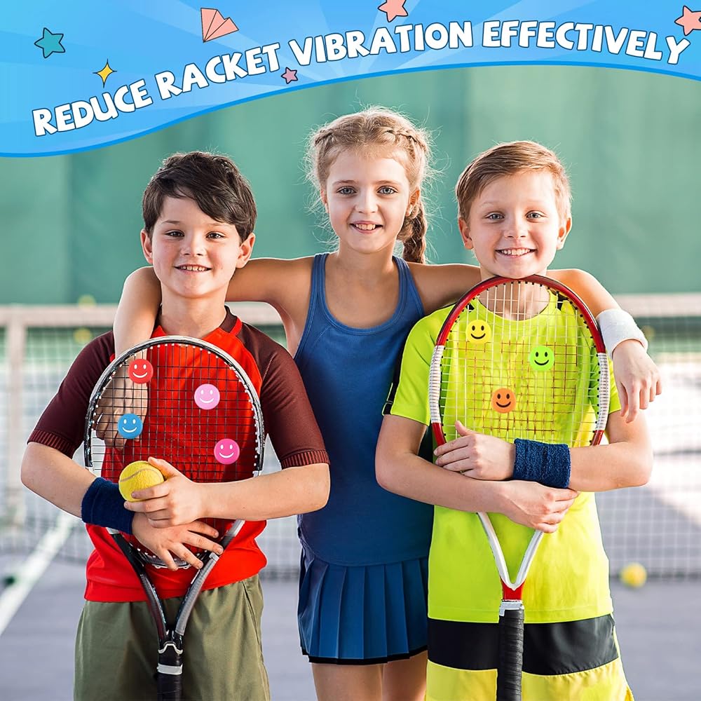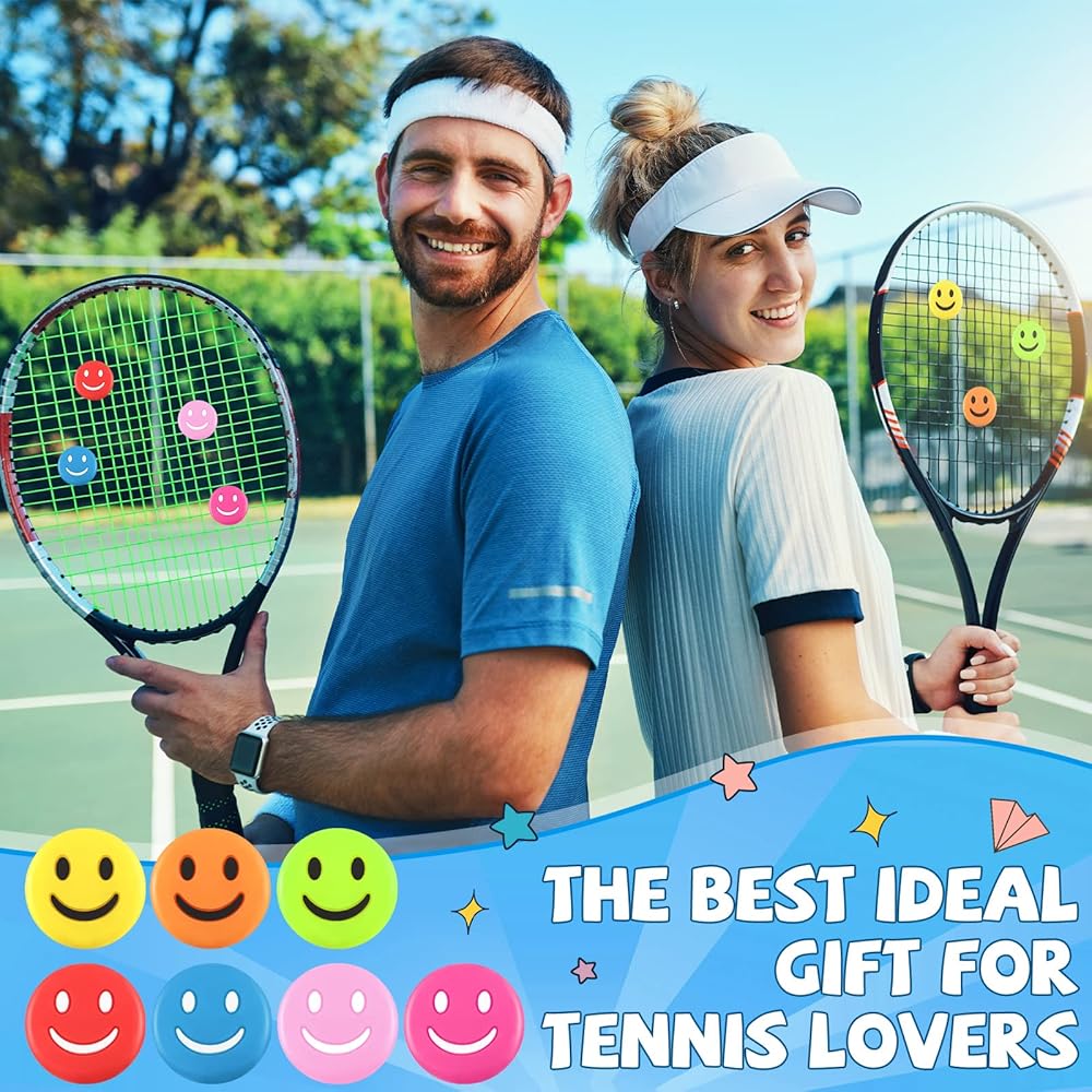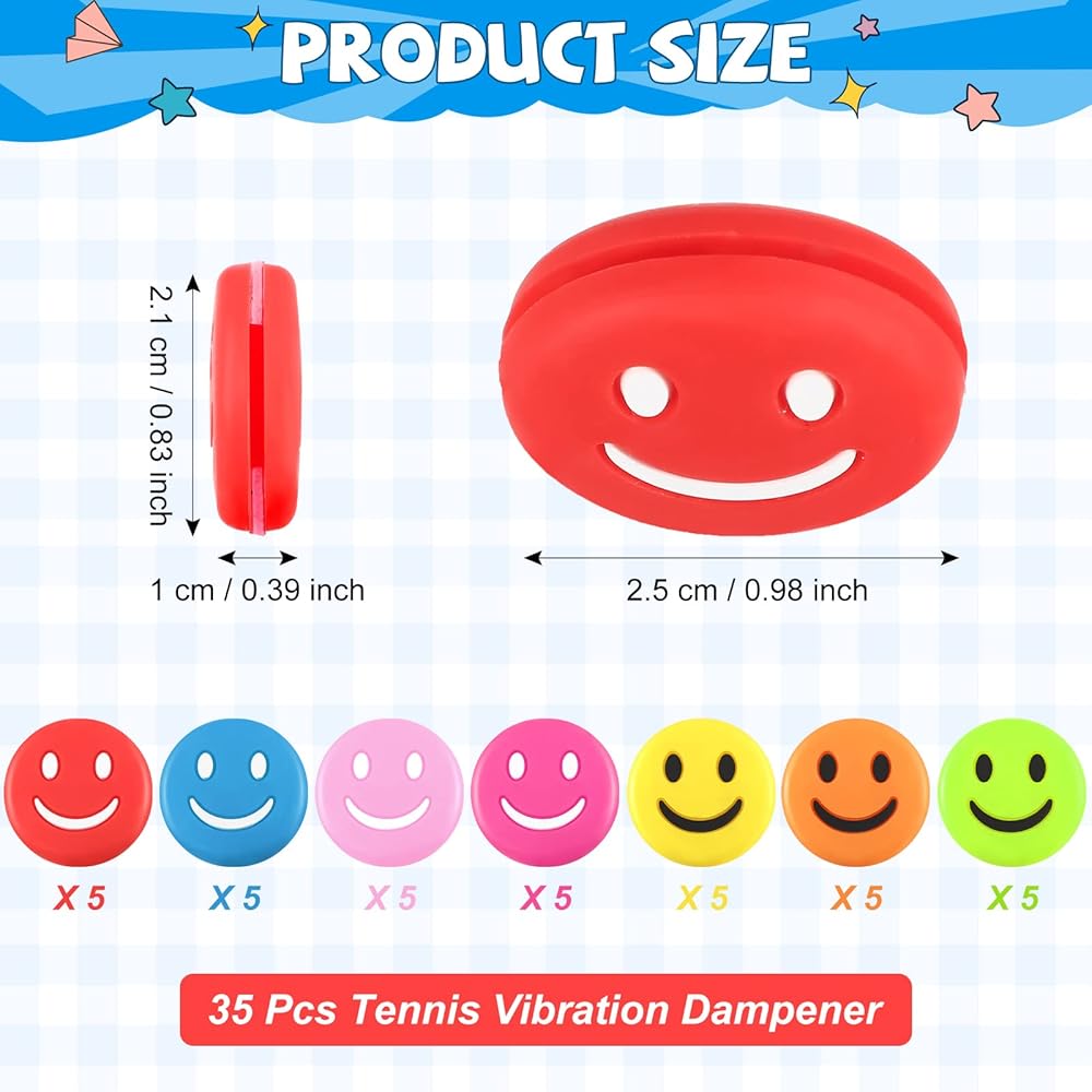 Cute and ingenious appearance: Smile tennis vibration dampener has a variety of colors to choose from, green, yellow, red, pink, blue, etc.; you can choose what you like to match with different tennis rackets to make your racket more vivid
