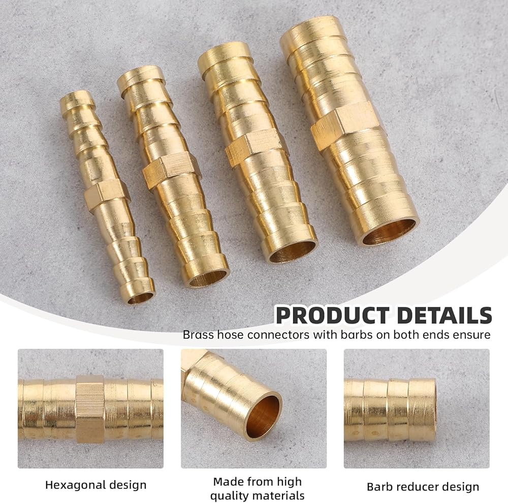 【Versatile Sizes and Quantity】Includes 22 brass barbed hose fittings in four sizes: 1/4" (6mm), 5/16" (8mm), 3/8" (10mm), and 1/2" (12mm). Perfect for various pipe connection needs