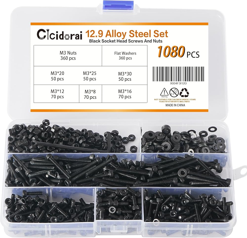 420 Pcs M5 x 8/12/16/20/25/30mm 10.9 Grade Alloy Steel Button Head Socket Cap Screws Bolts with M5 Nuts, M5 Washers And 1 Pcs Hex Key Wrenches Assortment Kit