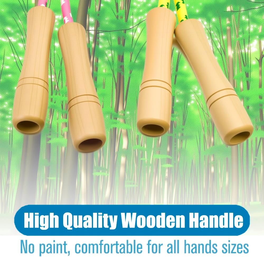 【Ergonomic Wooden Handles for Comfortable Grip】Homello Jump Rope for Kids features eco-friendly, lightweight wooden handles designed for small hands. The ergonomic design ensures a secure and comfortable grip, making it easy for children aged 4-8 to enjoy hours of tangle-free fun.