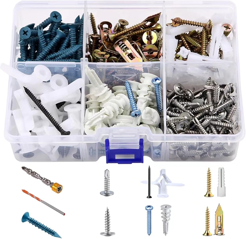 ANCHOR BOLTS MADE FROM FIBERGLASS REINFORCED NILON: While most gypsum board anchor bolts are made from regular plastic, our anchor bolts use tough fiberglass reinforced nylon. With our drywall screw kits, the cracked design allows you to install fasteners without the frustration of breaking or falling off.