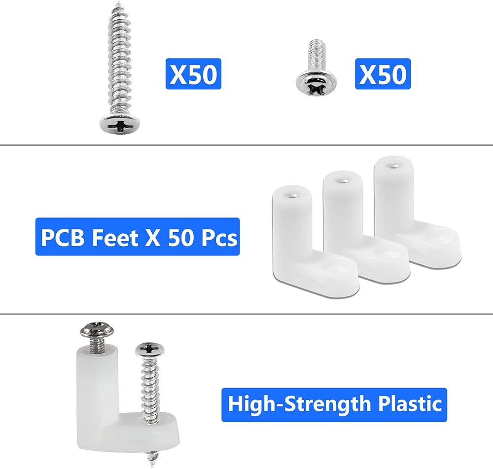 【Pacakge & Suitable Size】 You will receive 50pcs L type pcb feet and 100pcs mounting screws (Each foot comes with 2 pieces screws). Each pcb standoff measures approx. 0.8" x 0.8"/21.2mm x 20.3mm, can secure the board tightly. Sufficient enough for you to satisfy using and replacing daily needs.