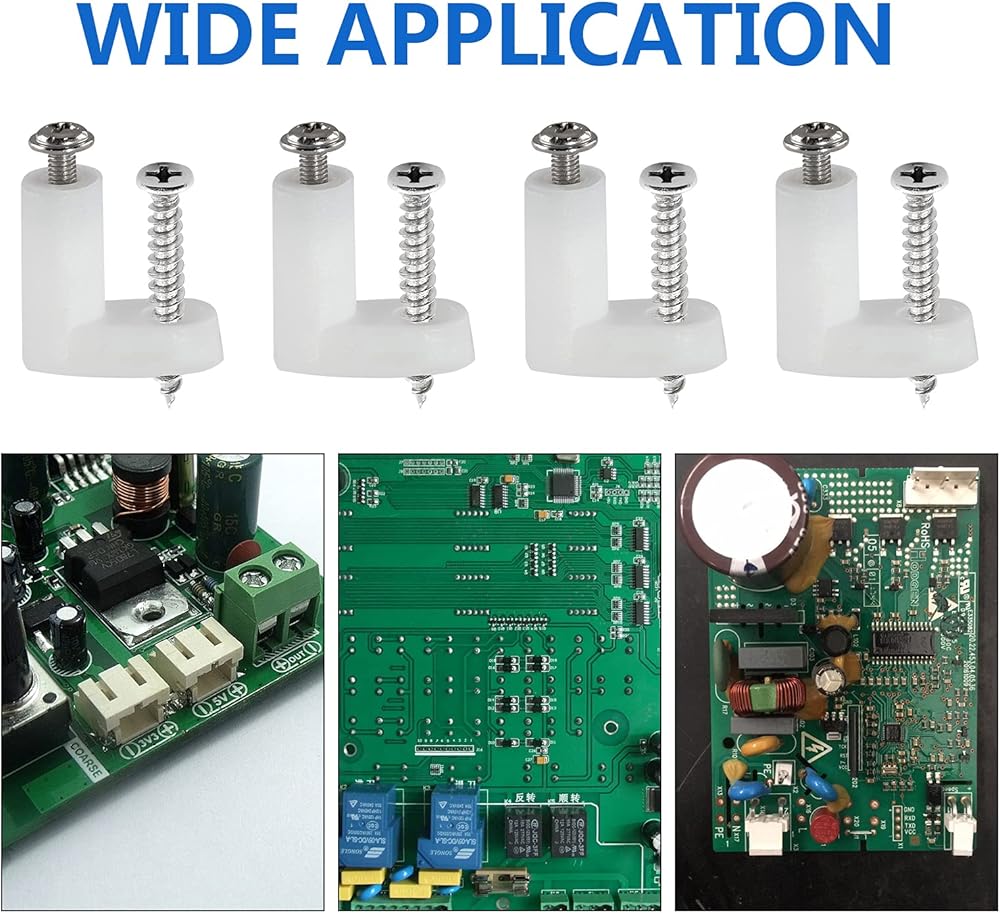【Premium Material】Our pcb board mounting feet are made of high quality insulating plastics, which is sturdy, strong enough and durable in use. Such reliable plastic spacer can stay firmly on PCB Board, good insulation with long service life.