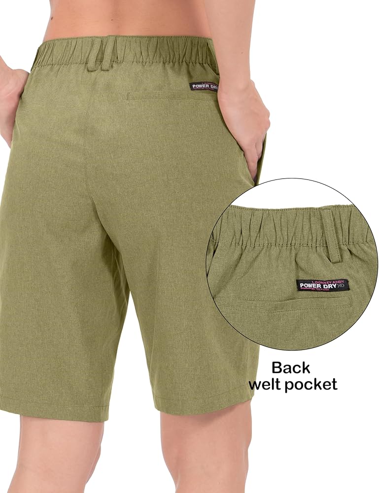 COMFORT FIT: Partial elastic waist to help adjust the fit. Hits just below the knee with a 10.5 inches inseam