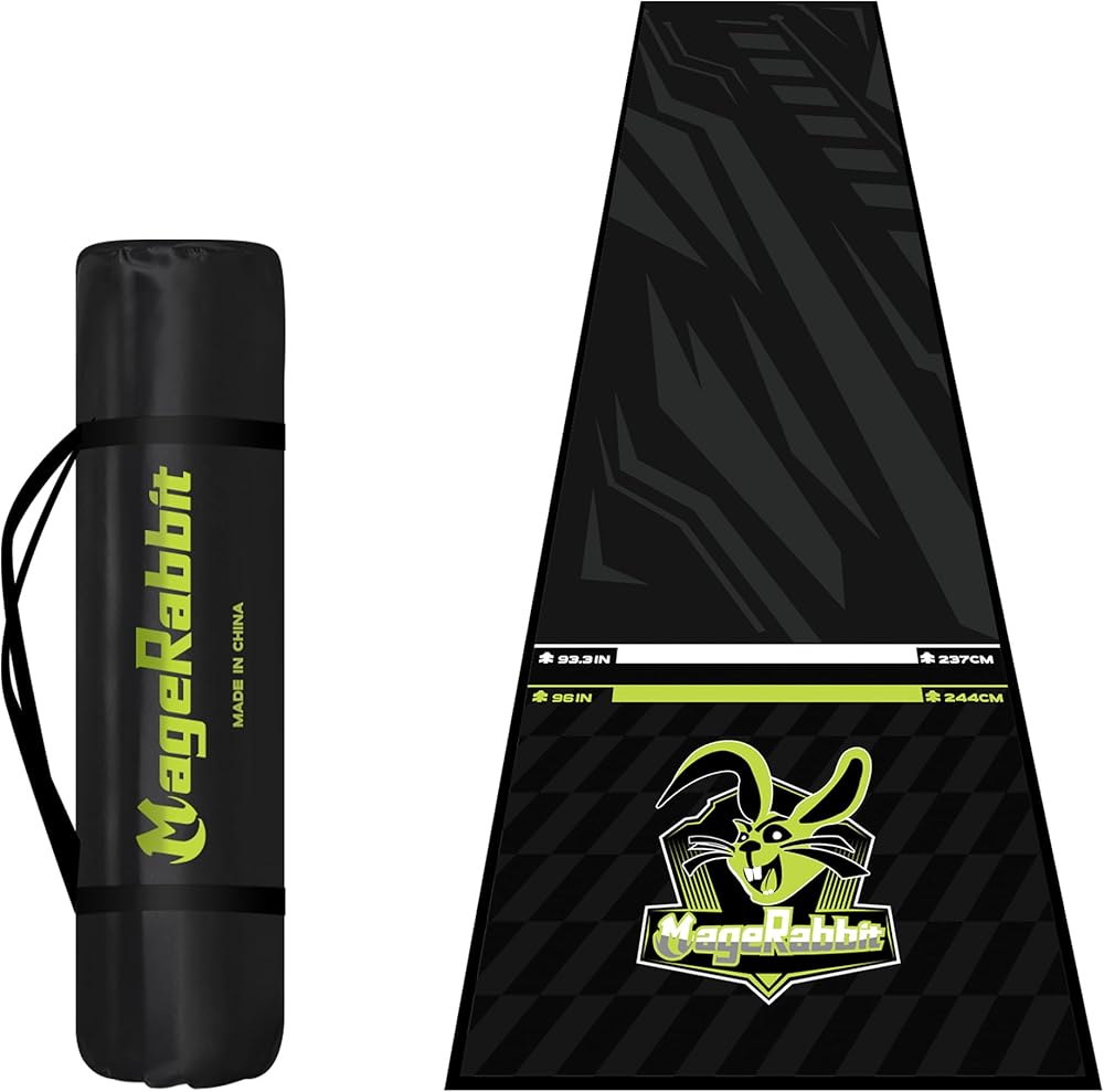 Elevate your dart game with the MageRabbit Dart Board Mat. This Dart mat comes with a convenient carrying bag, making it easy to transport and set up for dart games anywhere. Measuring 65 x 295 cm (approximately 25.6 x 116.1 inches), it provides ample space for players to stand and throw darts. The mat features clear start lines, ensuring fair play and accurate scoring. Whether you're a seasoned pro or a casual player, this durable mat offers a safe and enjoyable dart-throwing experience. Bring the excitement of darts to your next gathering with the MageRabbit Dart Board Mat.