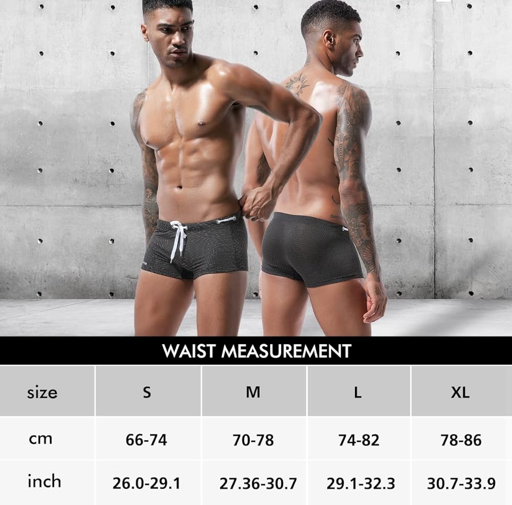 Elastic waistband with drawstring: Men's beach briefs with drawstring waistband can be freely adjusted in tightness according to your waist size. When you exercise in the water, make sure your shorts do not fall off easily.