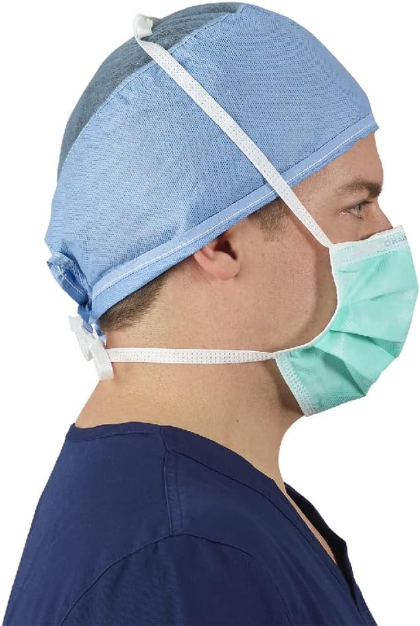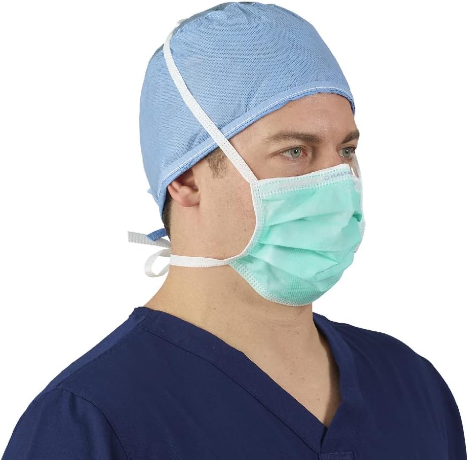 HALYARD FLUIDSHIELD 1 Disposable Mask with Ties, with SO SOFT Lining, Pleat-Style, Fog-Free, Green, Level 1, 28806