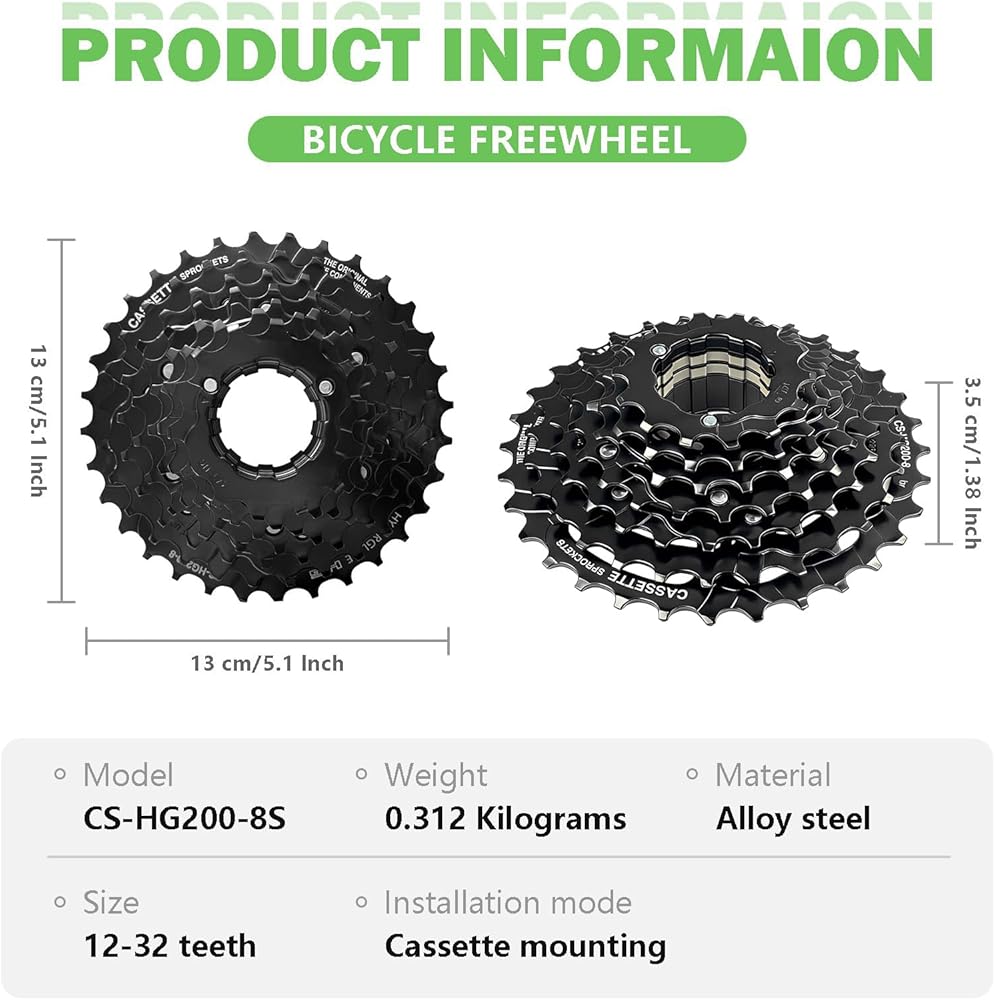 【Versatile Compatibility】The CS-HG200 8 Speed bike cassette is suitable for a wide range of bikes, including road bikes, mountain bikes, and urban folding bikes. Whether you're engaged in high-speed road cycling or rugged mountain adventures, it perfectly meets your needs.