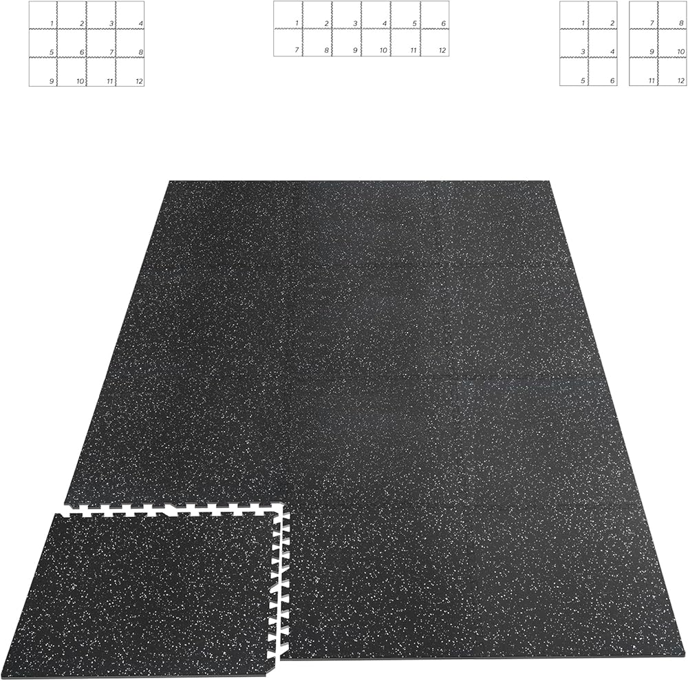 HAPBEAR 0.56'' Thick 12 Pcs 48 Sq Ft Exercise Equipment Mats - High-Density Rubber Top EVA Foam Interlocking Mats, 24x24in Tiles, Heavy-Duty Treadmill Mat for Hardwood Floors, Home Gym Mat