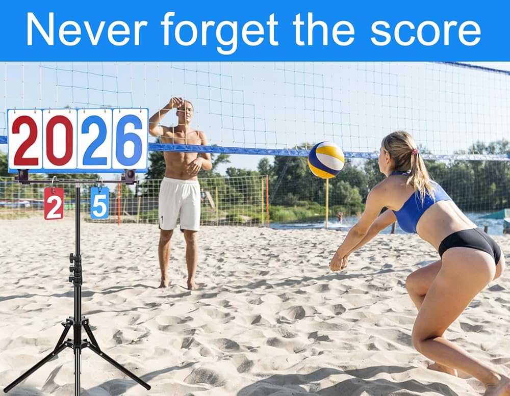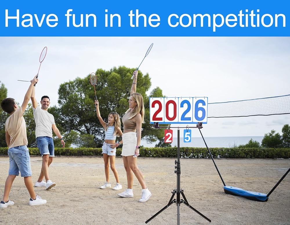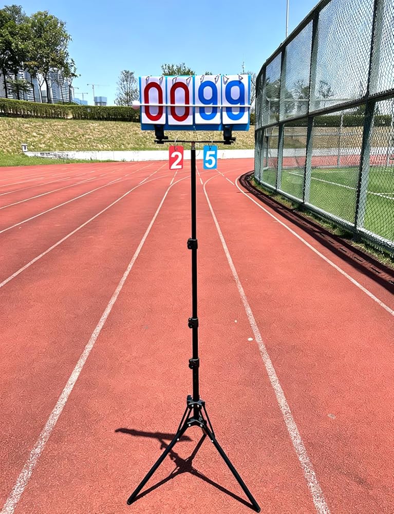 Clear Digital Display: The scoreboard utilizes a contrasting red/blue-on-white display for the numbers(0-9), Adjustable Height with tripod, ensuring visibility even from a distance