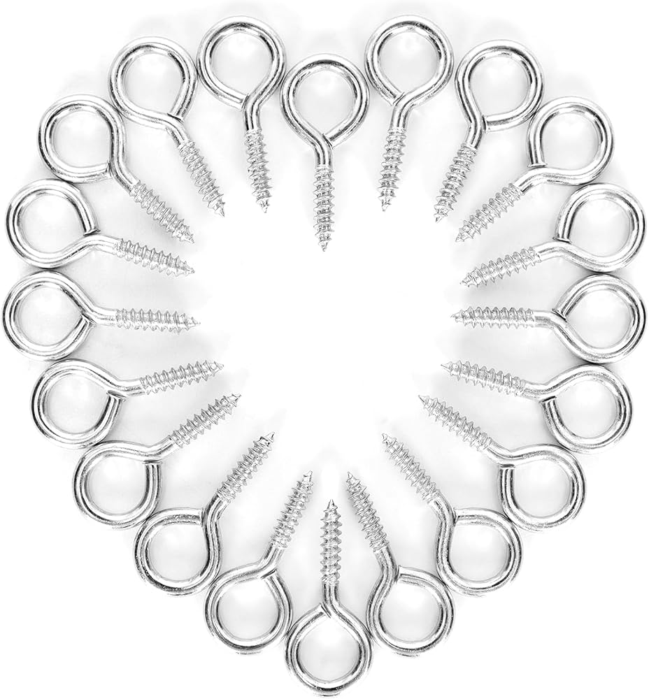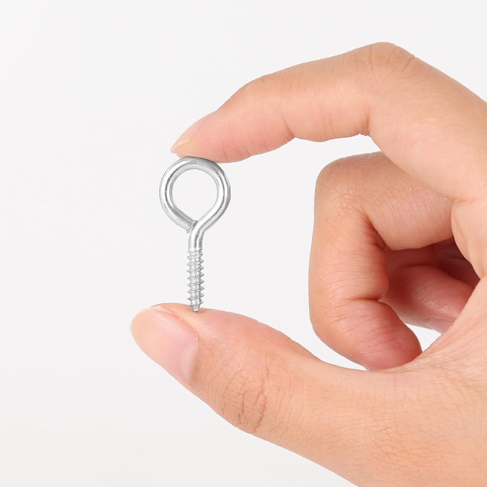 Come and own this 1 inch small screw eye hook! The package contains 100 ones. It's small, space-saving, beautiful and practical. The sufficient quantity suits indoor and outdoor use. Installation is simple and fast, needing no complex tools or skills. Ordinary people can easily install it for home DIY projects like making wind chimes or keychains to hang items. It has wide applications. It offers stable connections for metal, wood or plastic. Photos display boards can be hung indoors, bird houses or feeders fixed in the courtyard, and banners or flags in the children's room. The closed design is safe, preventing ropes and accessories from falling off. Made of high-quality steel with surface-coated treatment, not prone to corrosion and rusting, strong and durable. It can bear some weight and meet daily needs. Don't miss it!