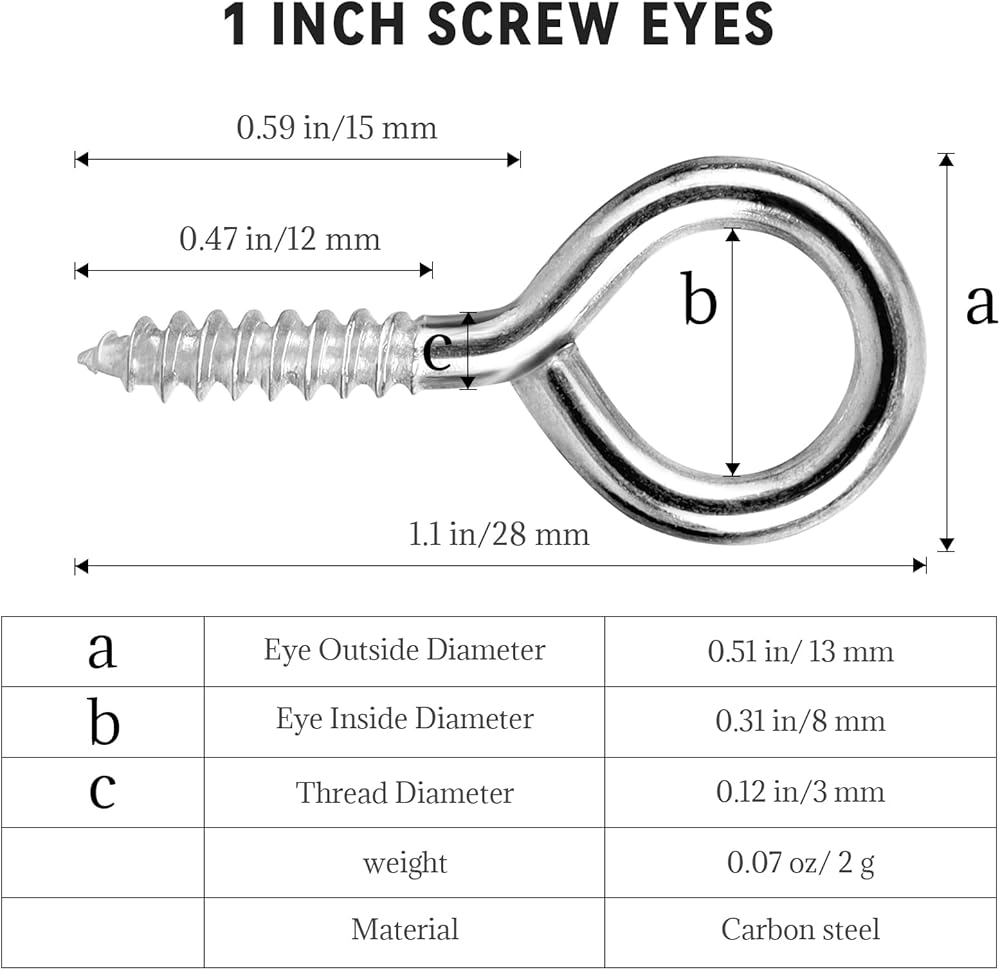 1 INCH SMALL SCREW EYE HOOKS: The package contains 100 black eye hooks screw. Screw eyes are small in size, do not occupy space, and are suitable for use in various compact positions while maintaining aesthetics. The sufficient quantity is convenient for your indoor and outdoor use.