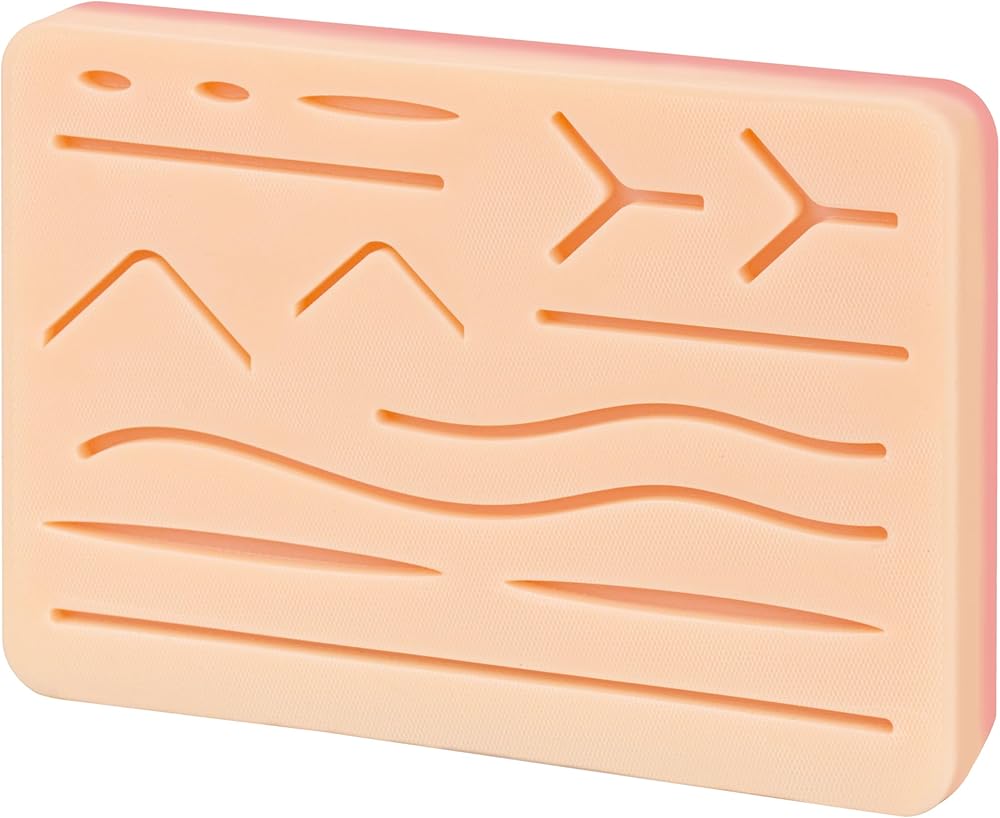 Best Suture Kit- This Suture Practice Pad comes in 4.8 x 6.9 inches, larger size, variety of wounds, dense but lightweight, reusable, portable from your apartment to classroom, and easily perform the stitching practice or demonstration anywhere when needed, the best your can get for your suturing skills and stitching technics.