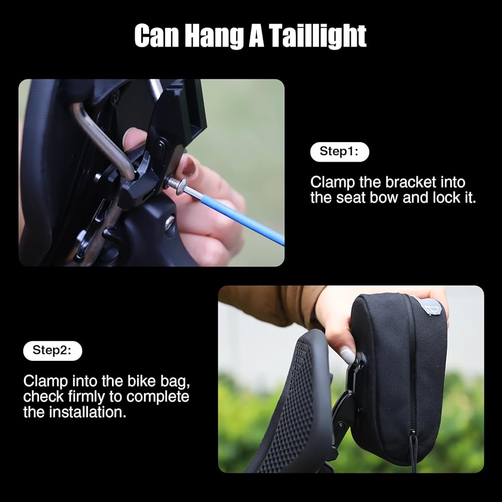 Night riding warning, reflective design, distributed on the side and tail of the bag, can be hung taillights, further enhance the safety of riding in the night or dark light. Effectively improve the safety of night riding by alerting other vehicles to your location.