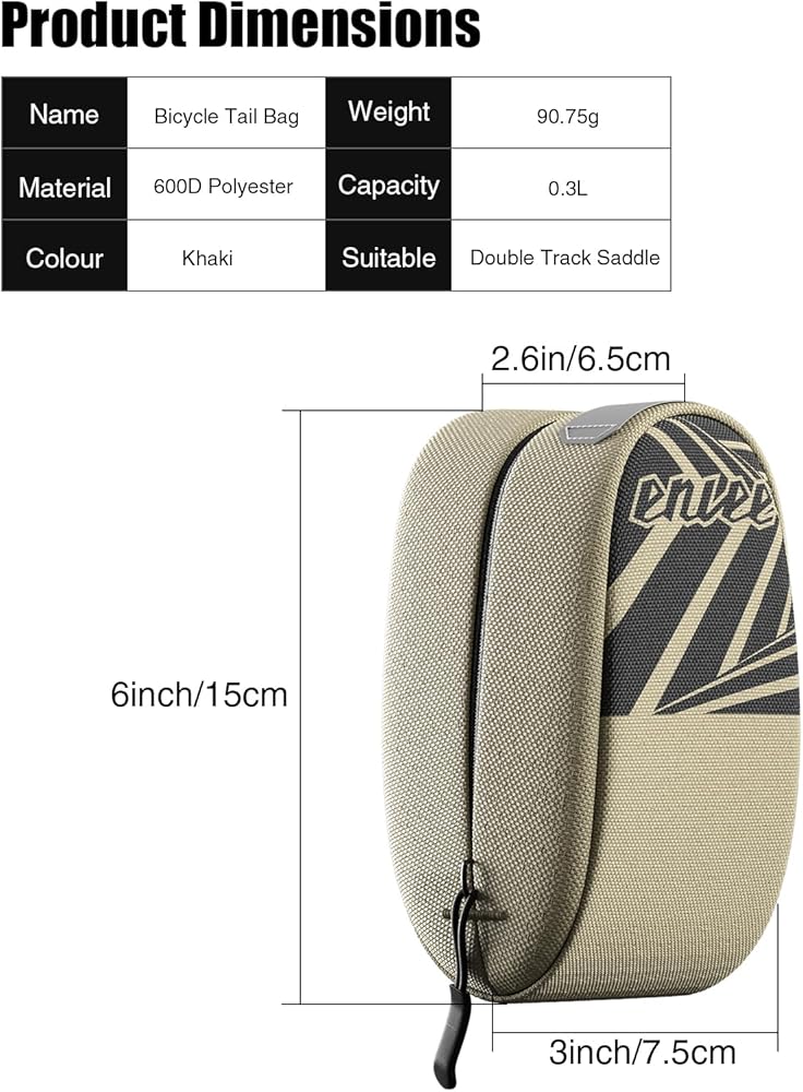 Multi-functional storage, 0.5 L Large capacity design, can accommodate the daily needs of riding equipment, such as tire lever, bike lights, bike inner tube and other small items, suitable for users who like minimalist travel.