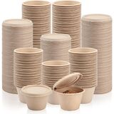 Package quantity: you will get 100 pcs 4oz natural bagasse fiber paper condiment cups with 100 pcs lids