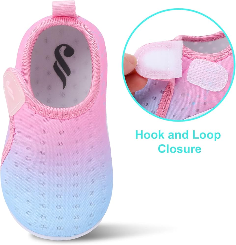 Convenient Design:Baby Water Shoes with Hook-and-loop closure design makes them easy to put on and pull off,reducing hurt caused by collision