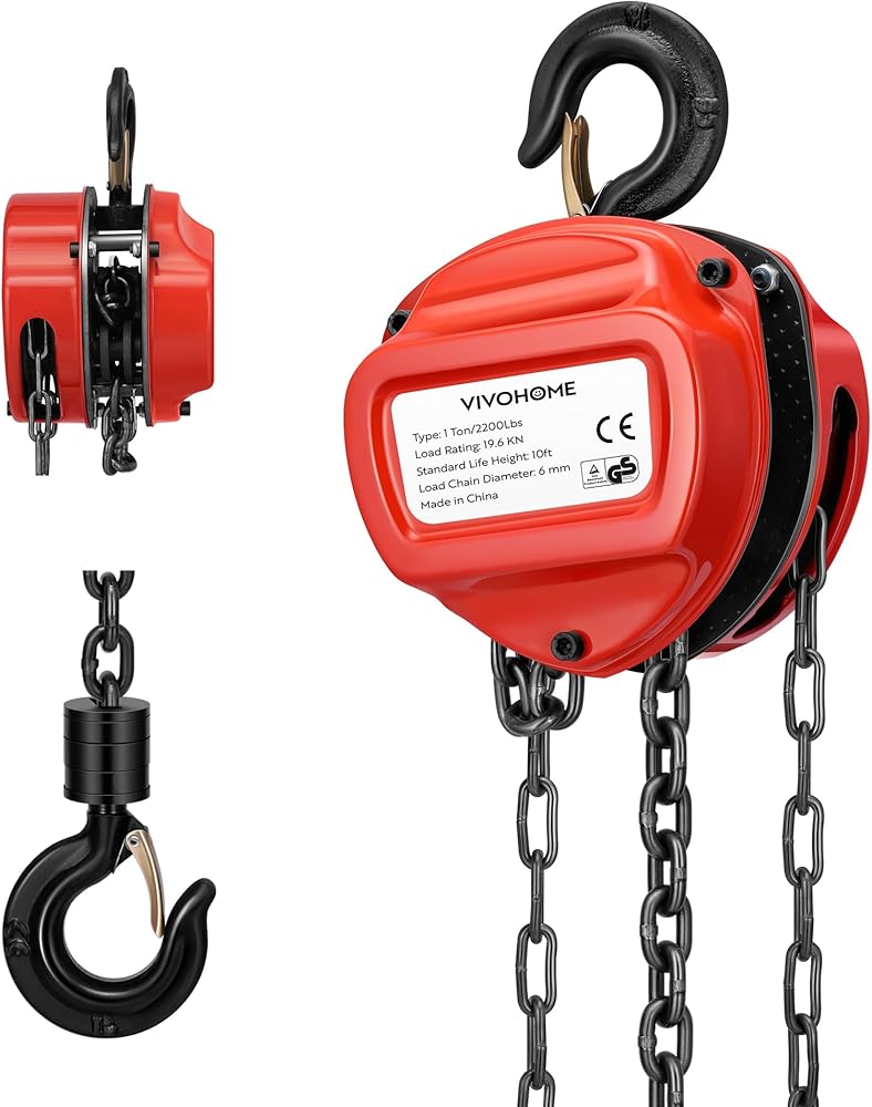 VIVOHOME Chain Hoist 1 Ton 10ft Red, Mini Chain Hoist 2200Lbs, Heavy Duty Pulley Hoist with G80 Manganese Steel Chain, Manual Chain Fall for Garages, Warehouses, and Automotive Tasks