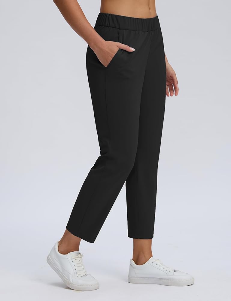 بنطال جولف للسيدات من Seamaid مع جيوب عميقة 7/8 سروال سفر رياضي قابل للتمدد للصالة غير الرسمية باللون الأسود M