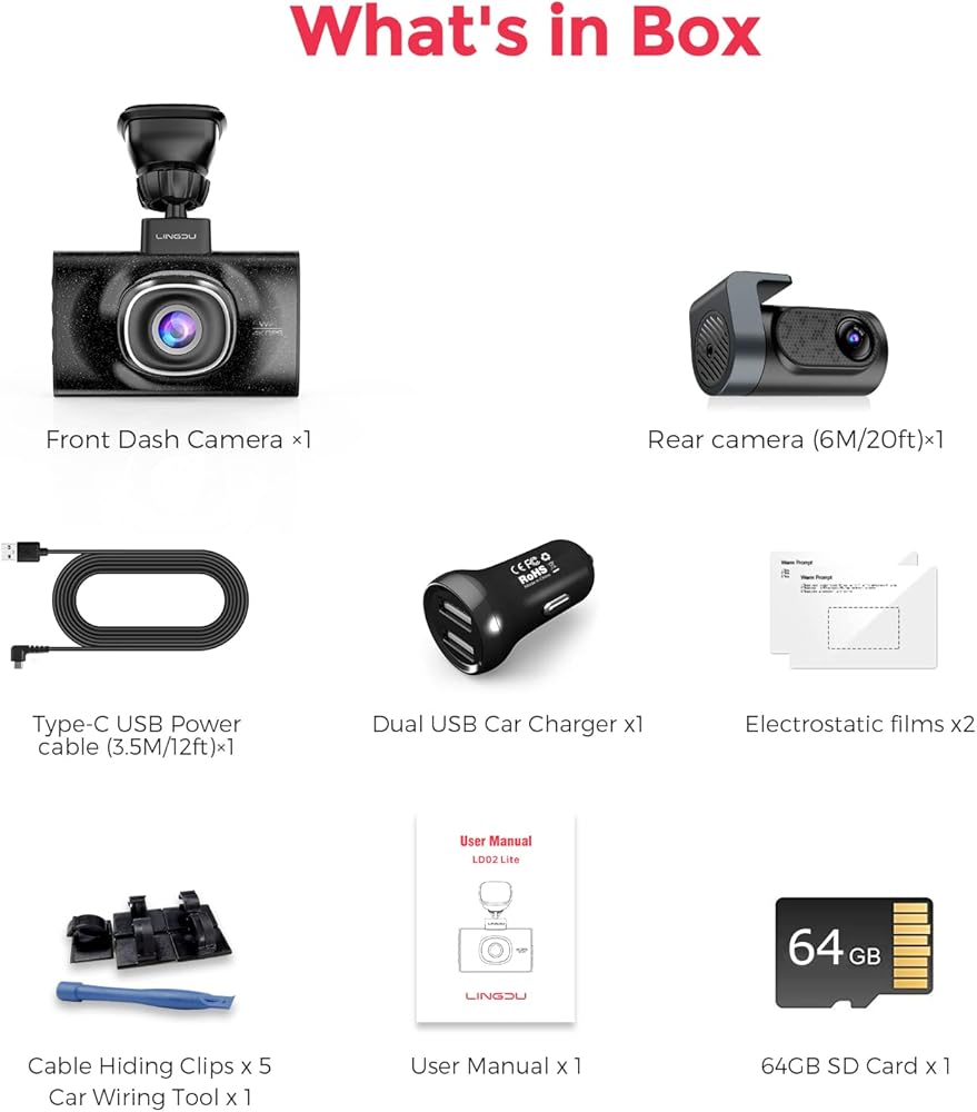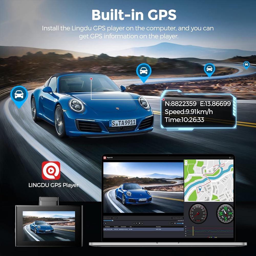 【Wi-Fi/Free APP, Built-in GPS】 Use our LINGDU APP to view and manage your dash cam recordings on your iOS and Android devices in real-time. Connect via Wi-Fi and directly download your recorded videos to your smartphone, making it easy to share them on social media. It also supports viewing and accurately tracking your driving route on the LINGDU GPS player.