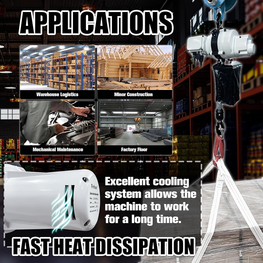 【WIDE RANGE OF APPLICATIONS】Suitable for installations,workshops,shipbuilding docks,warehouses,garages,and other commercial or industrial settings.It is a versatile and reliable electric chain hoist for various lifting and moving tasks.High speed and high efficiency give you better working experience.
