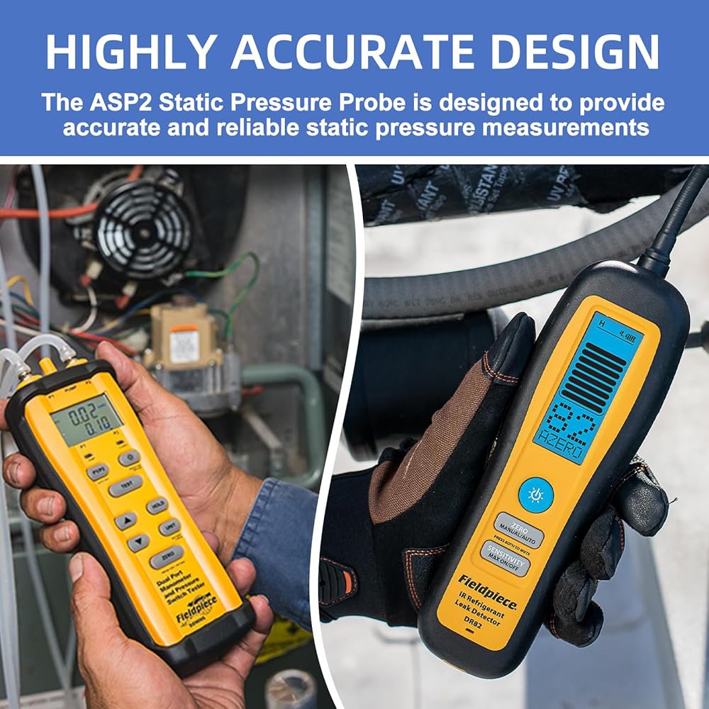 COMPATIBILITY: The ASP2 Static Pressure Probe can be used with all Fieldpiece manometers and also supports the use of Pitot tubes with magnetic flanges, extending its range of applications.