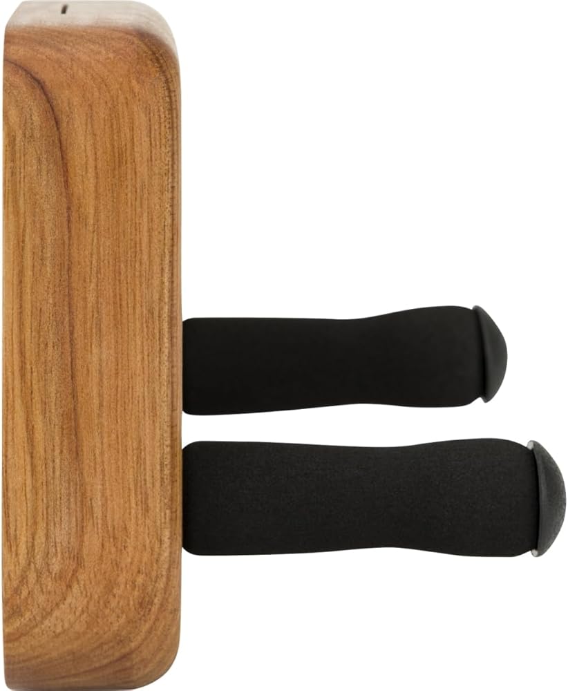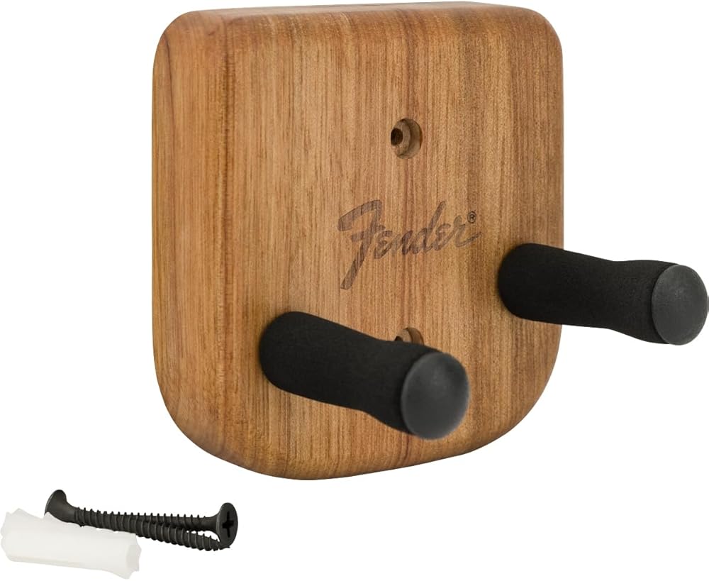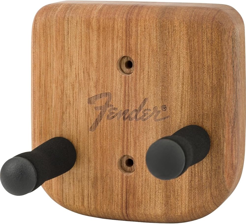 Showcase your Stratocaster® with the Level-Up™ Wall Hanger. Crafted from mahogany-finished wood, this uniquely shaped hanger features offset dowels to securely suspend your guitar. Designed to ensure straight hanging, the offset dowels are positioned precisely to the shape of your guitar's headstock. This distinctive fixed dowel design also allows your instrument to sit closer to the wall than standard yoke hangers, offering the illusion of floating suspension to seamlessly integrate into your space. The hanger also features a pick holder slit on top for added convenience. Please note that these hangers are crafted from authentic wood, which may display natural imperfections. Each hanger is one-of-a-kind and may vary slightly from the photographed product.
