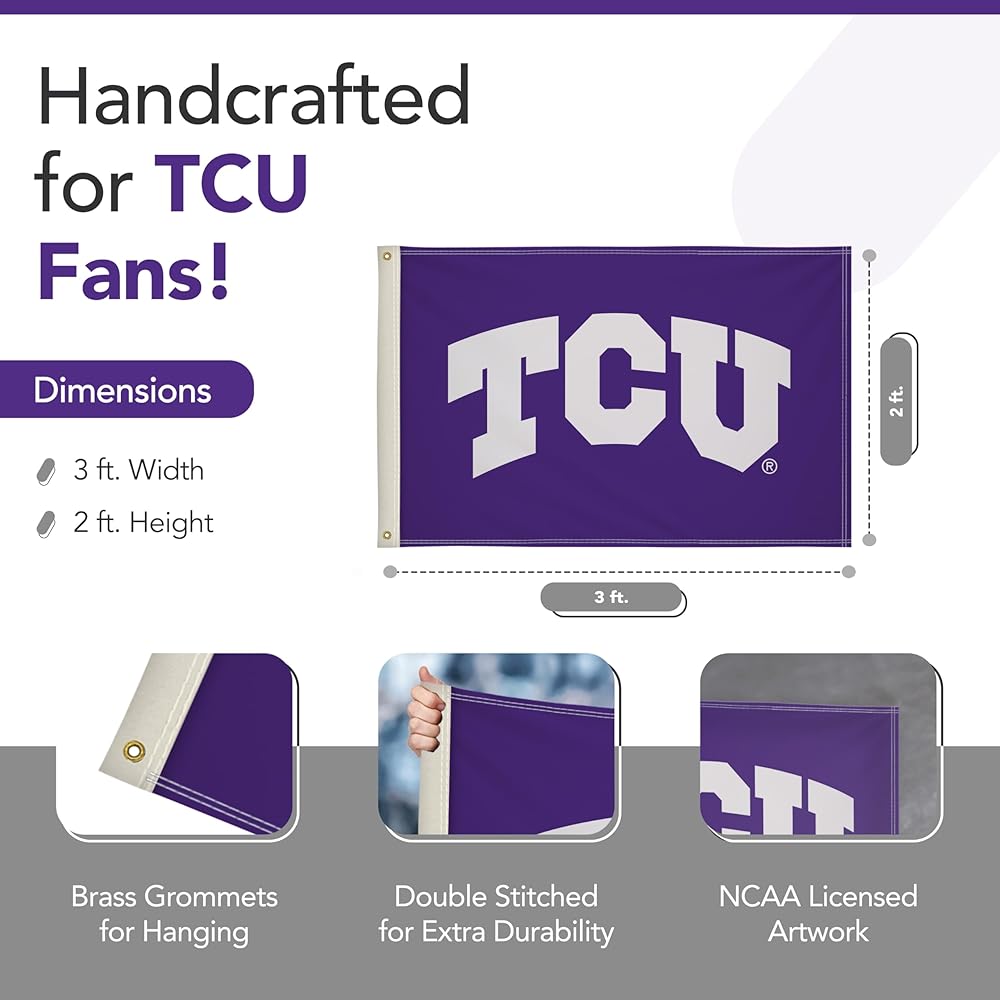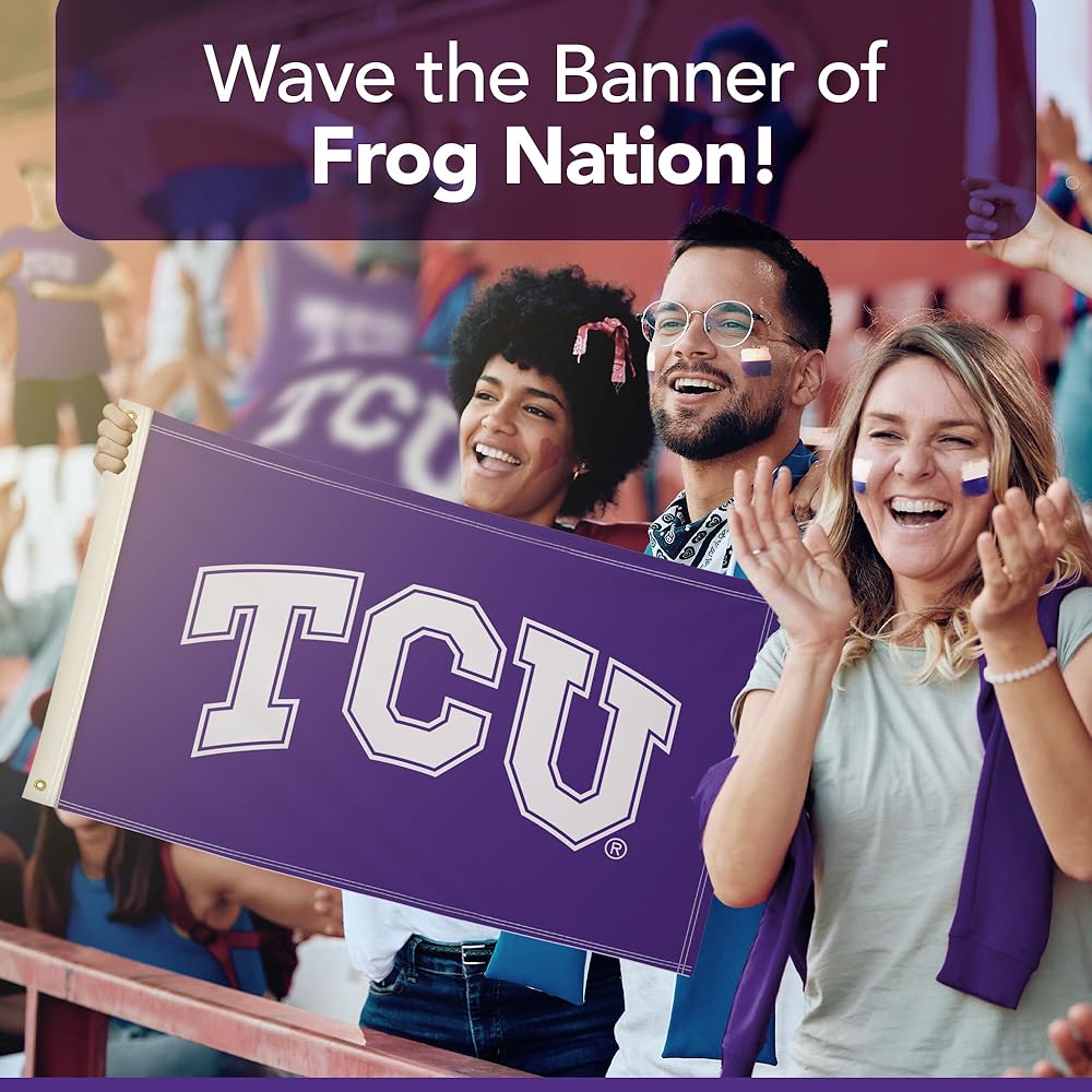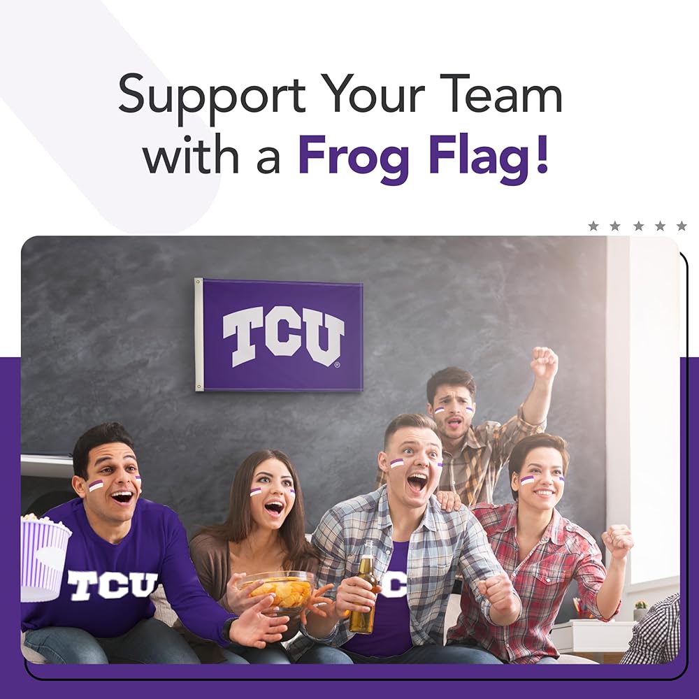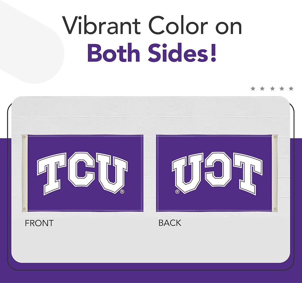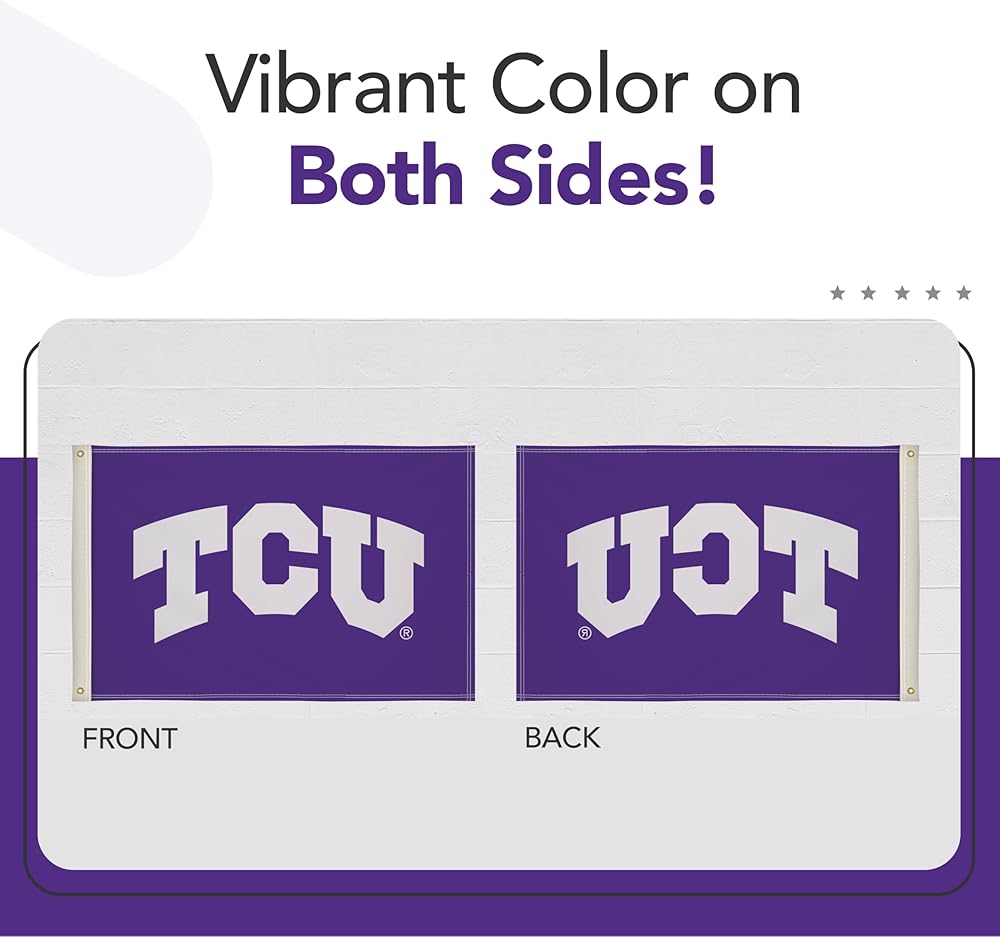 EASY TO DISPLAY - Brass grommets provide secure attachment points to quickly mount this TCU Horned Frogs flag on porch railings, deck posts, and indoor walls. The durable grommets allow simple installation for your game day party display.
