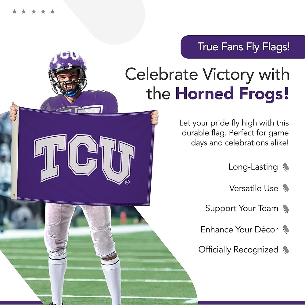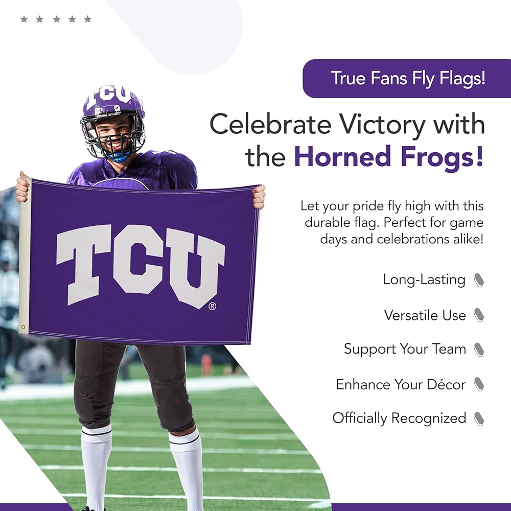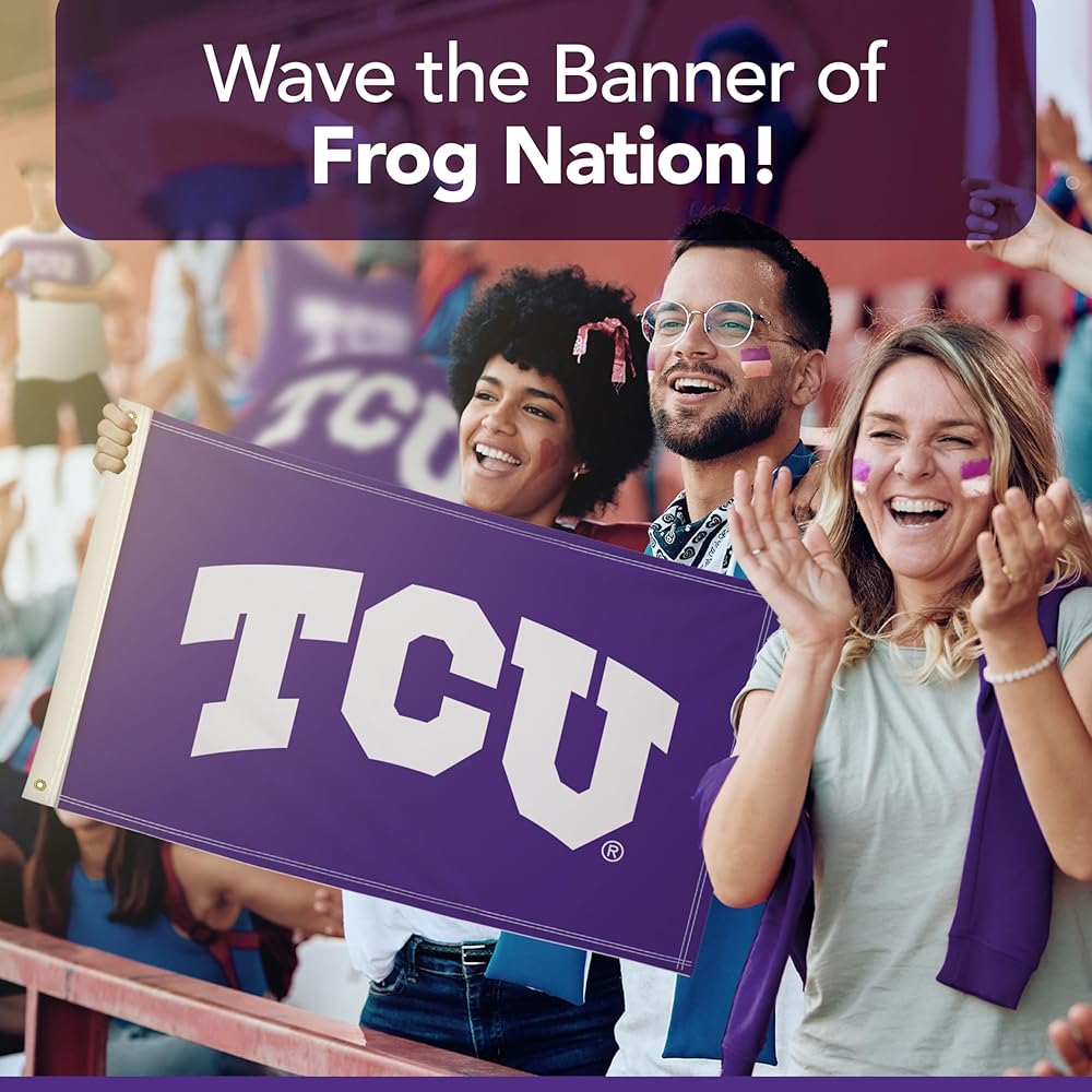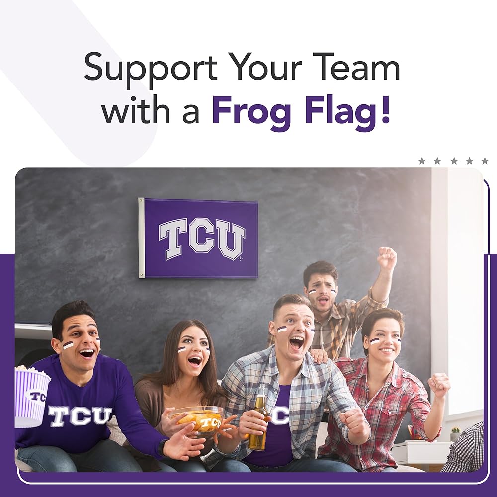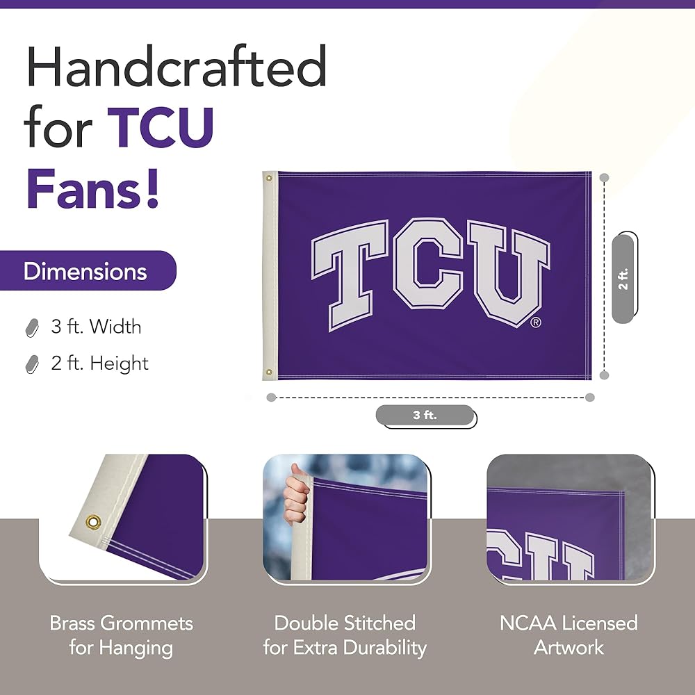 EASY TO DISPLAY - Brass grommets provide secure attachment points to quickly mount this TCU Horned Frogs flag on porch railings, deck posts, and indoor walls. The durable grommets allow simple installation for your game day party display.