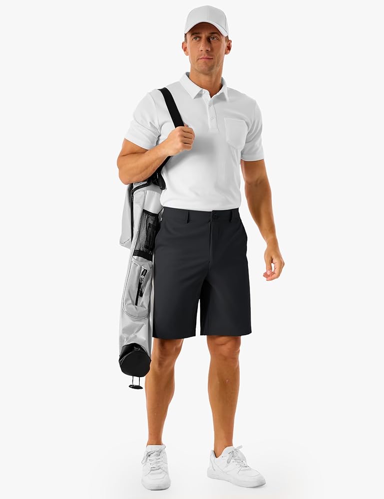 【Lightweight & Quick Dry】: Men's lightweight golf shorts are made of breathable and quick dry fabric effectively pull moisture away to keep you dry and comfortable during your golf game.