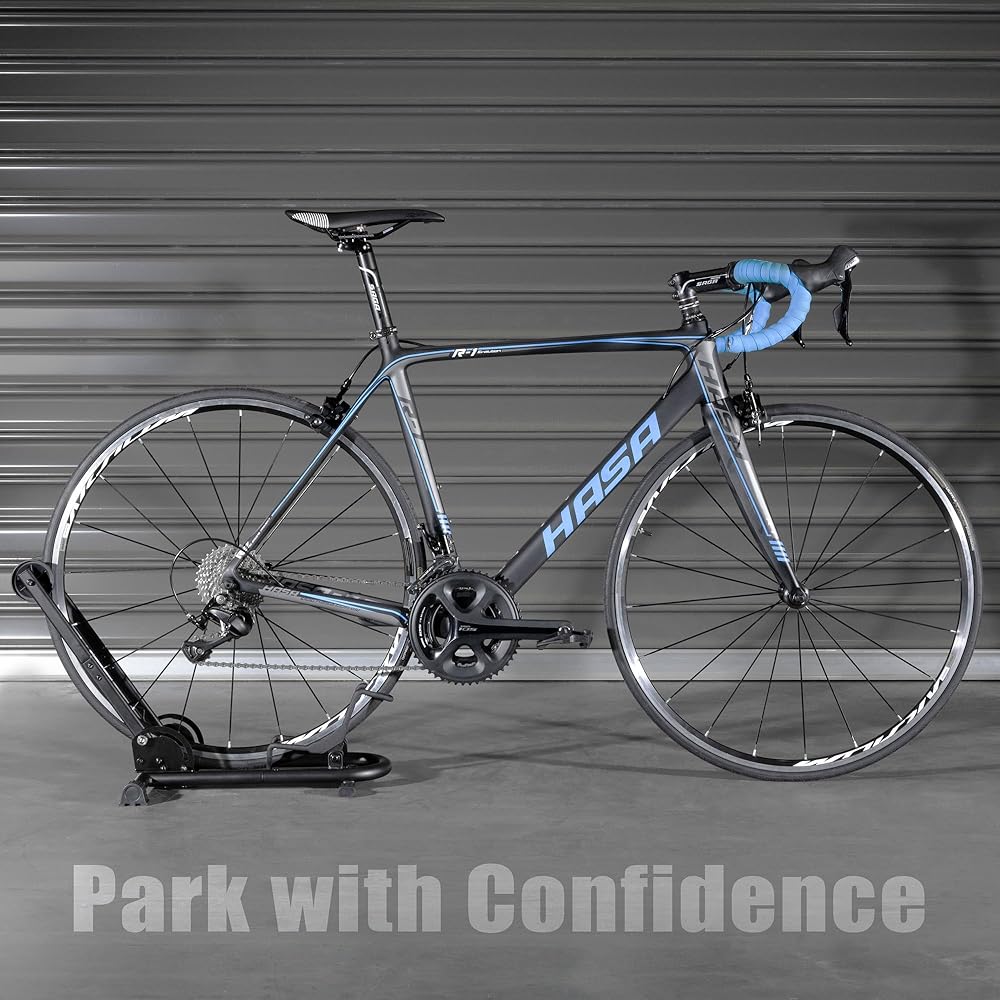 MOST STABLE BIKE STAND – There are three points holding on the tires, much better than other stands which have only one or two points holding on the frame, rim, disc rotor and derailleur. The bike's front or rear wheel sitting in the holder is much deeper than others, so it stays firmly in the holder. Plus a stylish dynamic stand base makes the bike impossible to be tilted if you do not push extremely hard onto the bike.