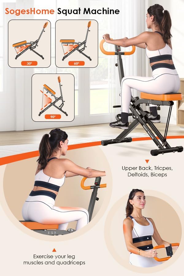TRAINING EFFICIENCY: Full Body Exercise. This squat machine is designed to fully exercise major muscle groups, including legs, core, arms and back. Through movements such as squats and rowing, it can comprehensively improve muscle strength and endurance to help you achieve your full body fitness goals.