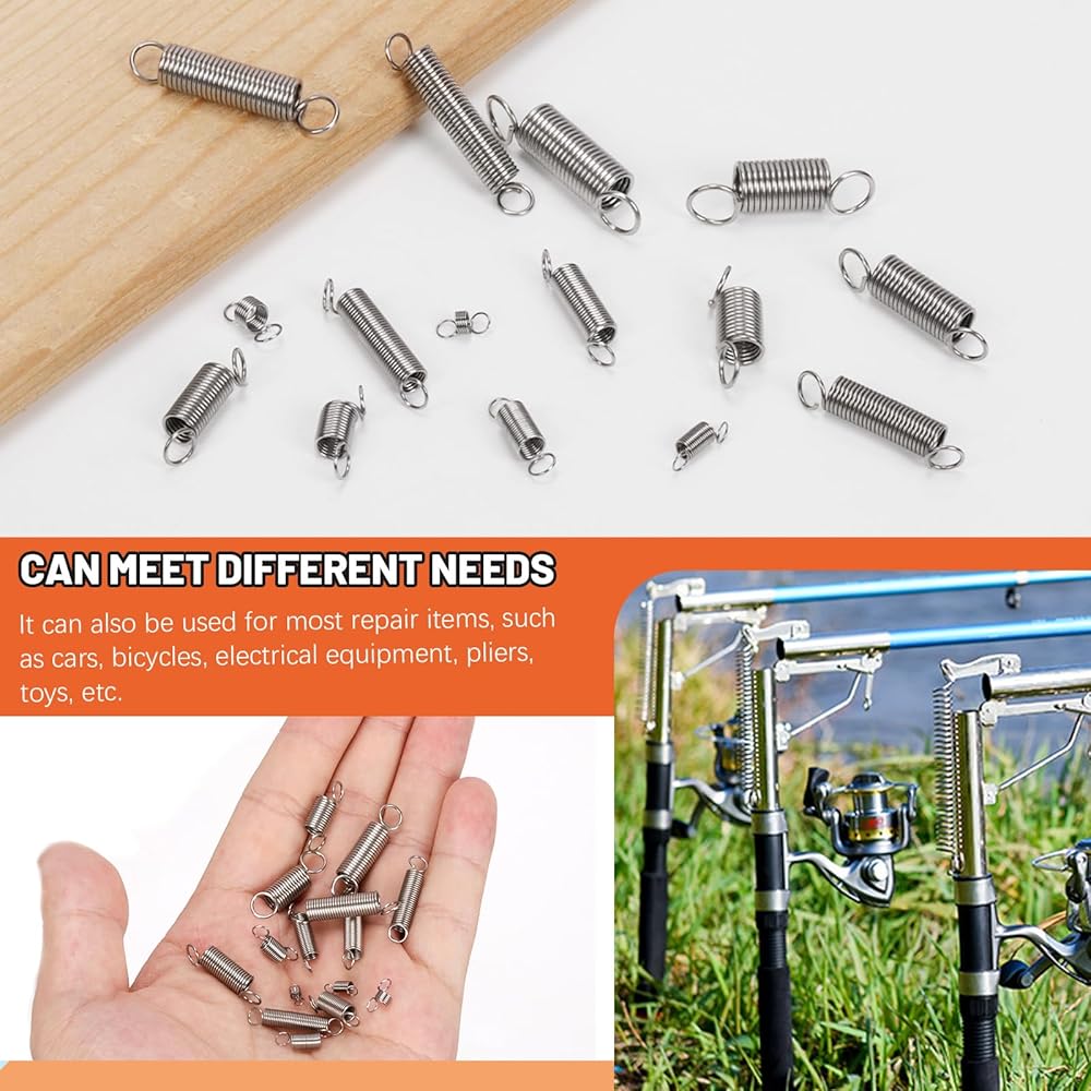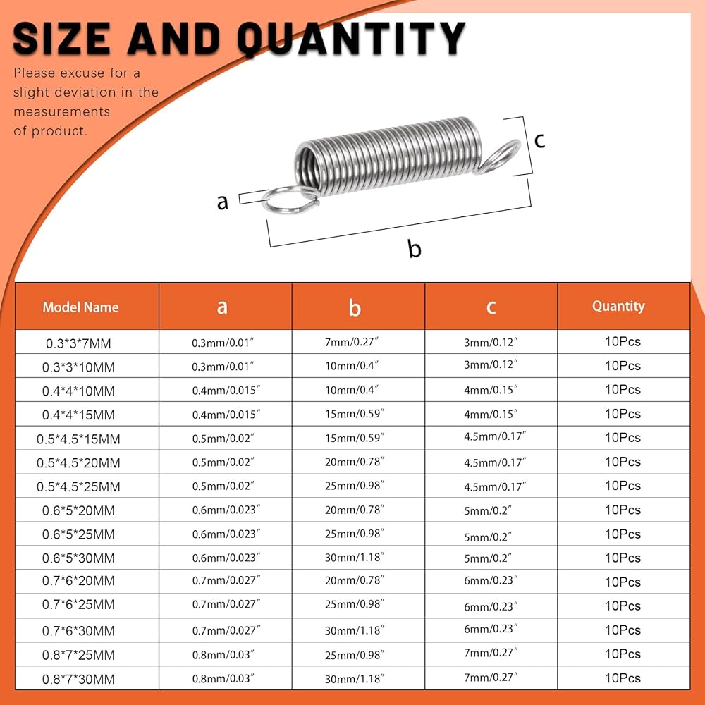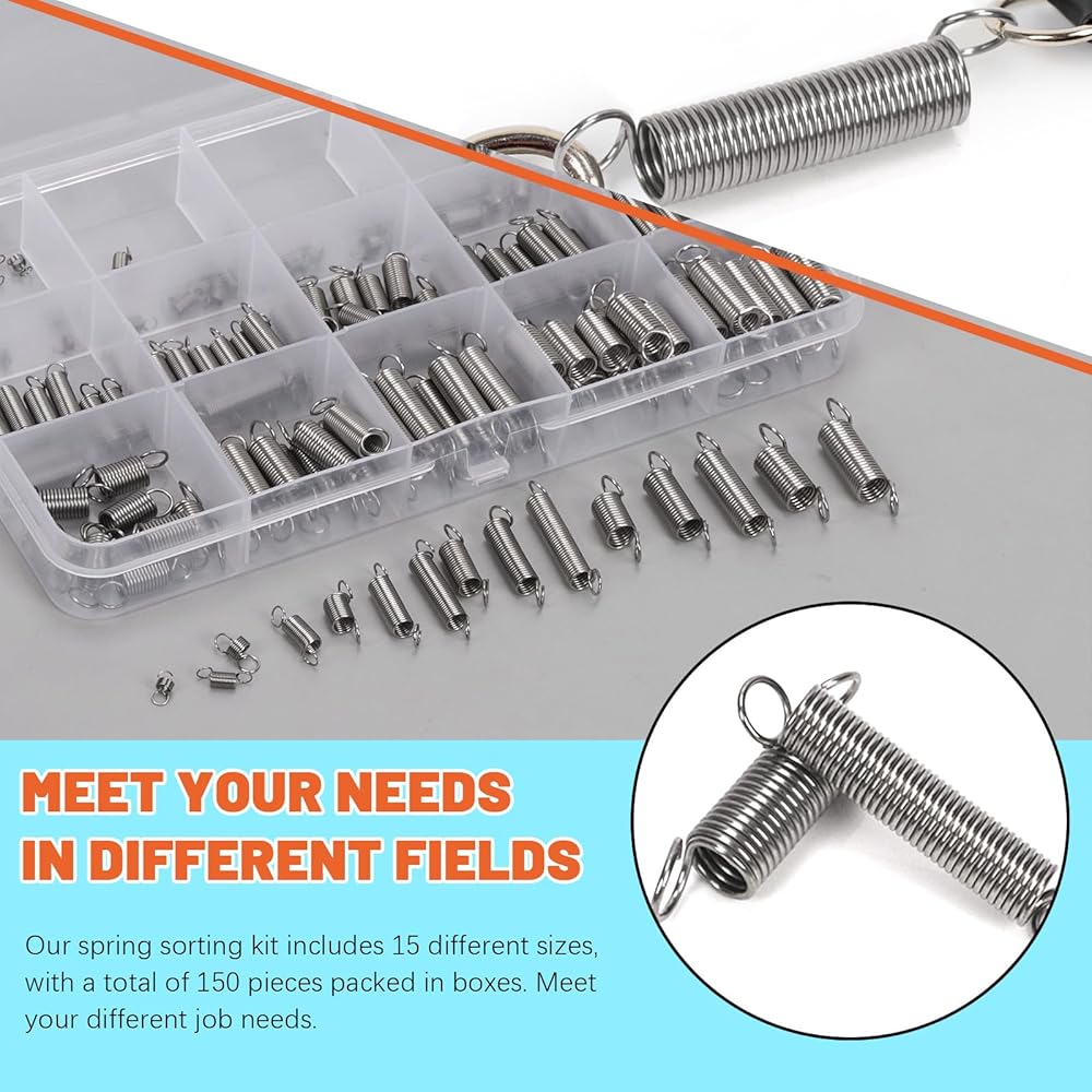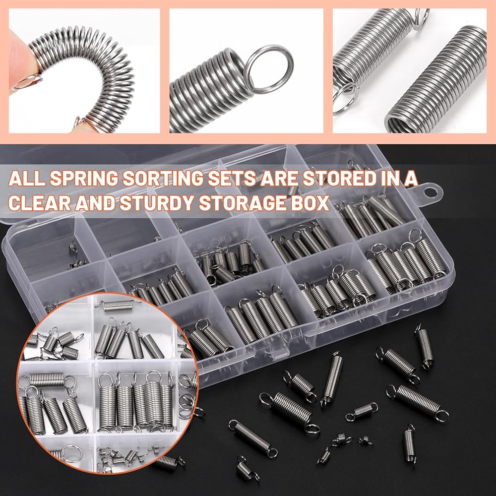 Easy to Store: Our extension spring sets include 15 different sizes with 10 pieces of each size for a total of 100 pieces, all stored in a clear, labeled box for easy storage and portability, making it easy to quickly find the size you need.