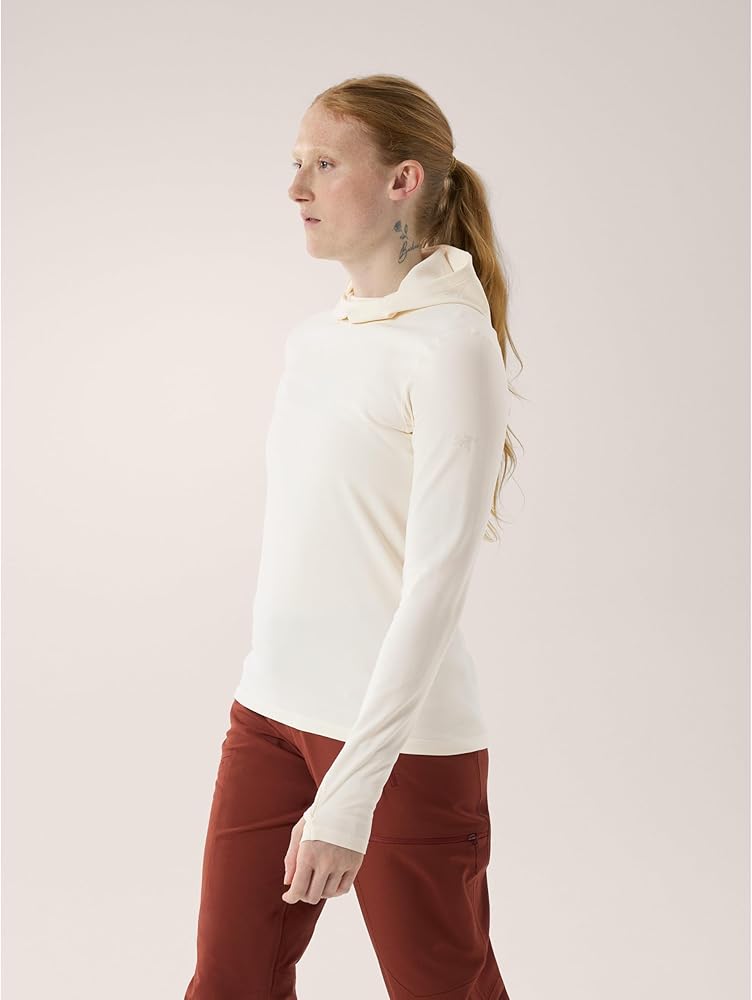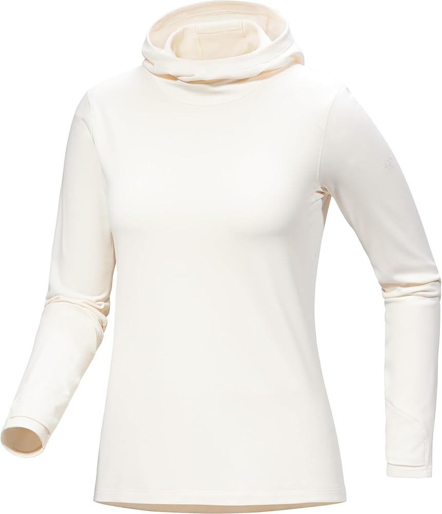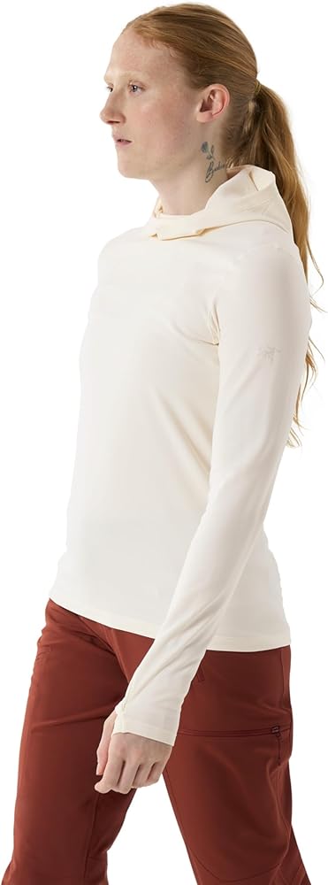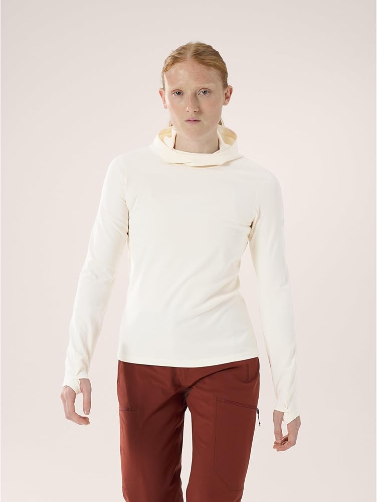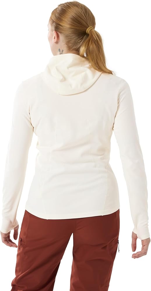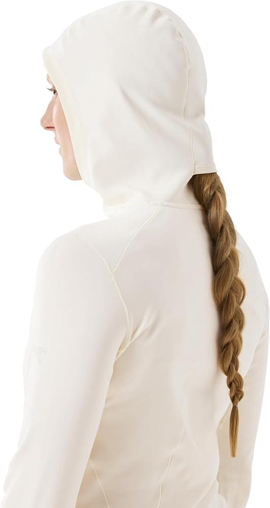 Phasic™ AR II engineered polyester fabric is soft, offers stretch and thermal comfort, and is made with wicking fibres |FC0 DWR (Durable Water Repellent) treatment repels water and helps minimize moisture pick-up |Full-coverage hood with ponytail port adds warmth, fits comfortably under a helmet |Thumb loops secure the cuffs and sleeves, keep hands covered for warmth and sun protection |Silvadur™ antimicrobial treatment provides lasting odour resistance |Low-profile seam construction reduces bulk and helps minimize irritation |Binding at back of collar for a smooth, comfortable finish |Ergonomic patterning and seam placement for freedom of movement and a shaped fit |Fitted, with articulated patterning for mobility, comfort, and easy layering