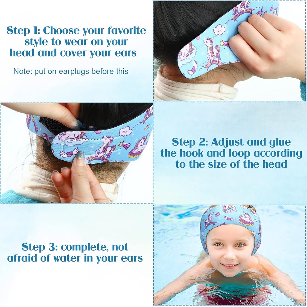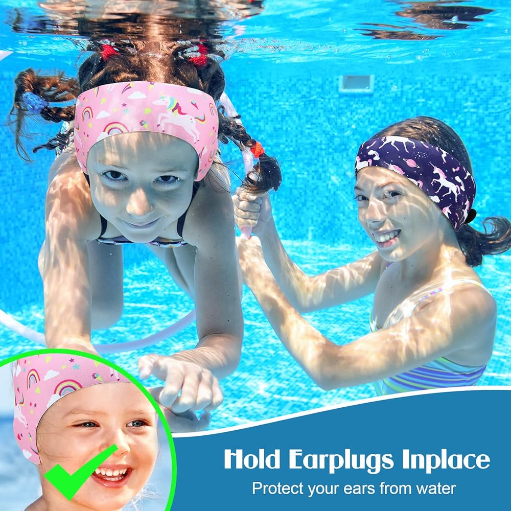 4 Pieces Swimming Headband Swimming Ear Band Adjustable Swim Headband Keeping Water Out Ear Protection for Kids Adults Surfing Bathing Kayaking (Unicorn Style)