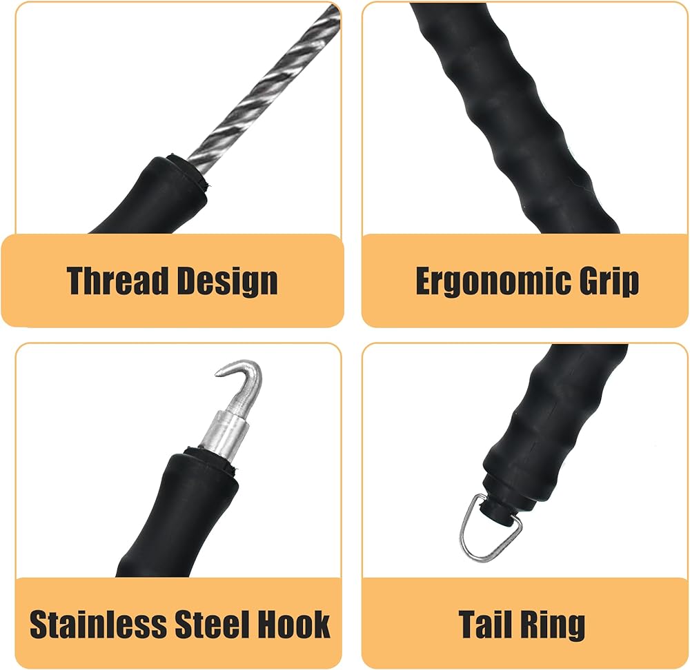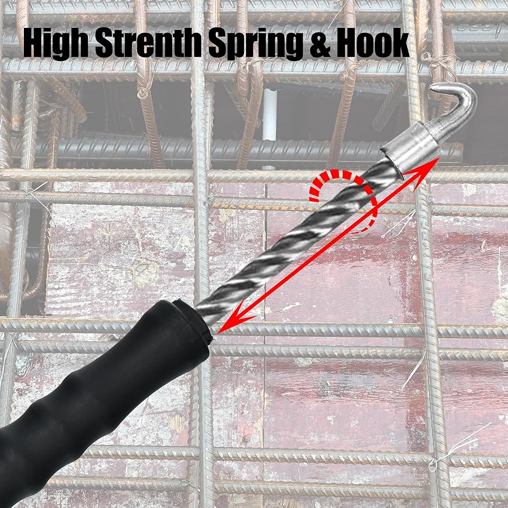 Simple & Easy: Equipped with an internal spring that can twist and fasten the wires quickly; all you need to do is pull it once its hook is in place. Note: Lubricant remains inside, which helps the rebar wire twister work smoothly