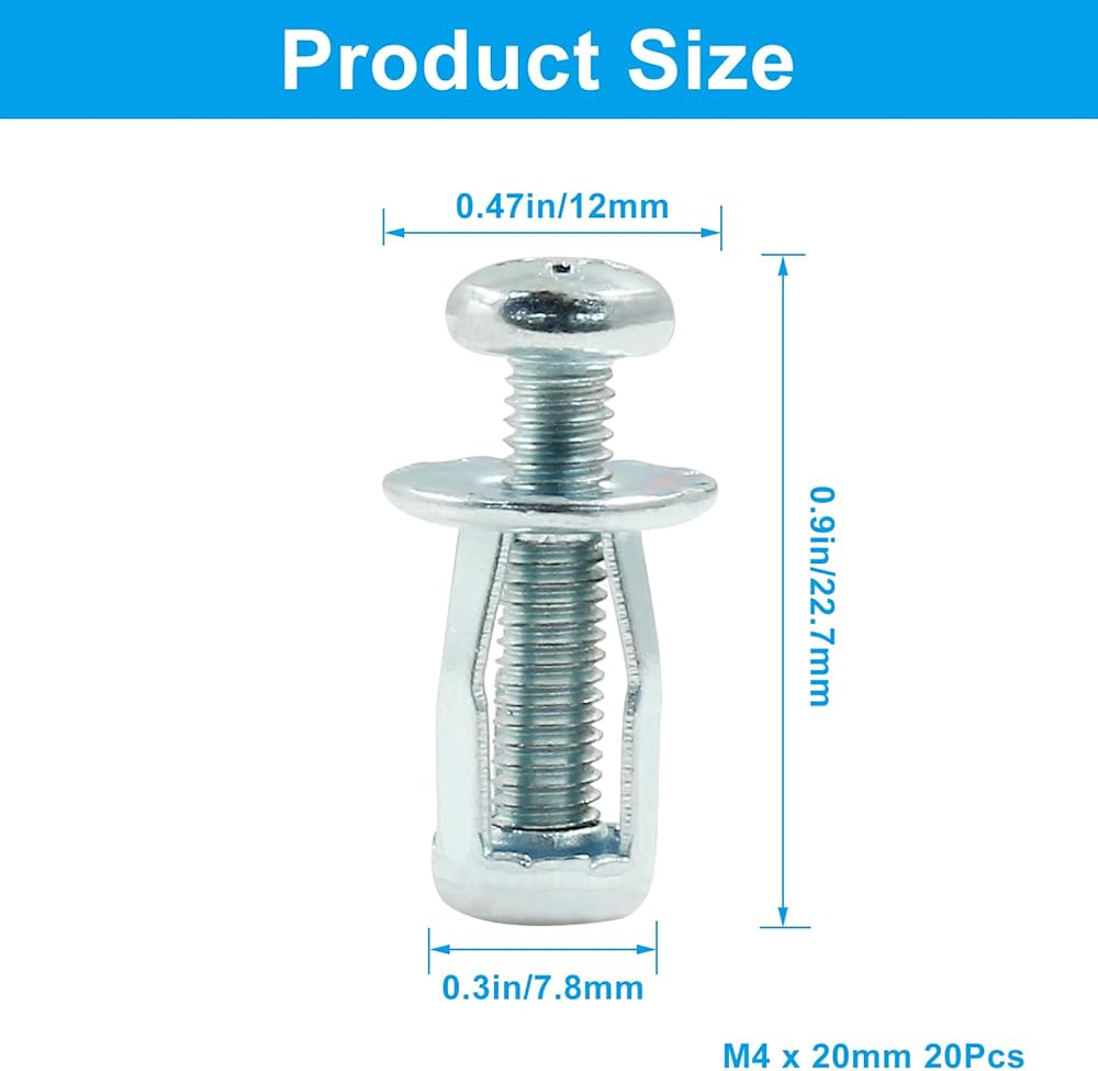 Waziaqoc 20Pcs M4 x 20 Hollow Door Anchor, Petal Expansion Nuts, Cavity Fixing Door Anchor for 0-5 mm Door Extra, Aluminium cladding Sheet Pipe, Iron Sheet (8 x 16 mm)