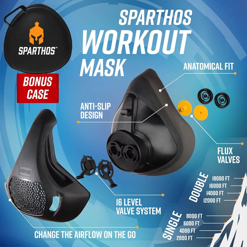 SPARTHOS Workout Mask is useful for all athletic sports like running, marathons, cycling, football, soccer, tennis, basketball, triathlons, weightlifting, athletics, Crossfit, hiking, yoga, strength training, mma, boxing, running, track and field, nfl, paintball, baseball, hockey, tennis, etc. Good mask, because this mask is also a breathing mask. It can also do workout mask and altitude mask. Altitude mask (high altitude mask for training) is the best training and workout mask 2 0. This running face mask can also be called breathing mask for running or running mask breathing training, workout mask breathing training, because exercise mask is good mask for workout. Work out mask can be used as fitness mask. basketball face mask, but cycling mask and cardio mask will be put as a sport mask. High altitude mask. Best sports mask, work out masks for altitude mask training. Great as cycling face mask. Breathing mask for training is a gym mask 3 0. mask one of the breathing masks calls workout breathing mask. Mask for running is one of the last altitude training devices like endurance mask. Buy with confidence!