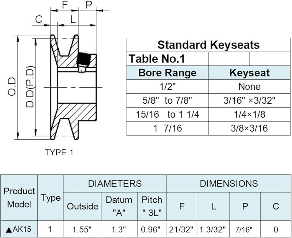 Standard V-belt Pulley: Use to "A"or "3L" or "4L" V-Belts