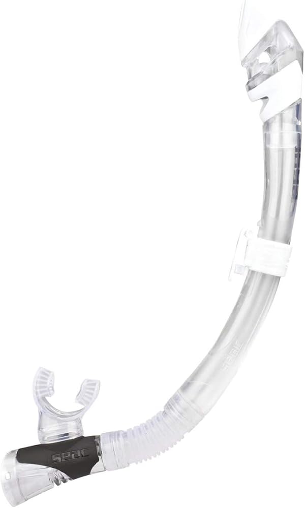 Complete your scuba diving set with Seac Fast Dry, the full dry snorkel with ergonomic silicone mouthpiece, dry top system and purge valve. The dry top system helps prevent water from entering the top of the snorkel. You can also find a purge valve at the base of the snorkel. Seac Fast Dry is available in 7 colours, 2 of them with a black polycarbonate body, to easily coordinate it with a lot of diving masks