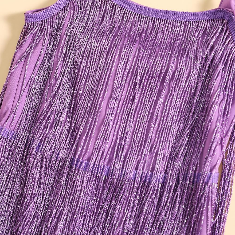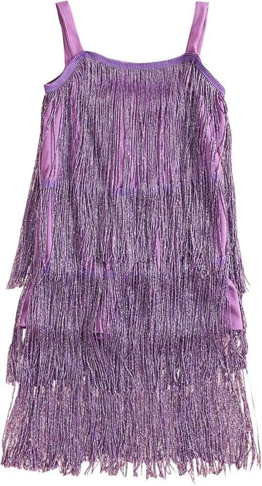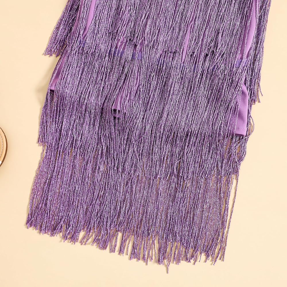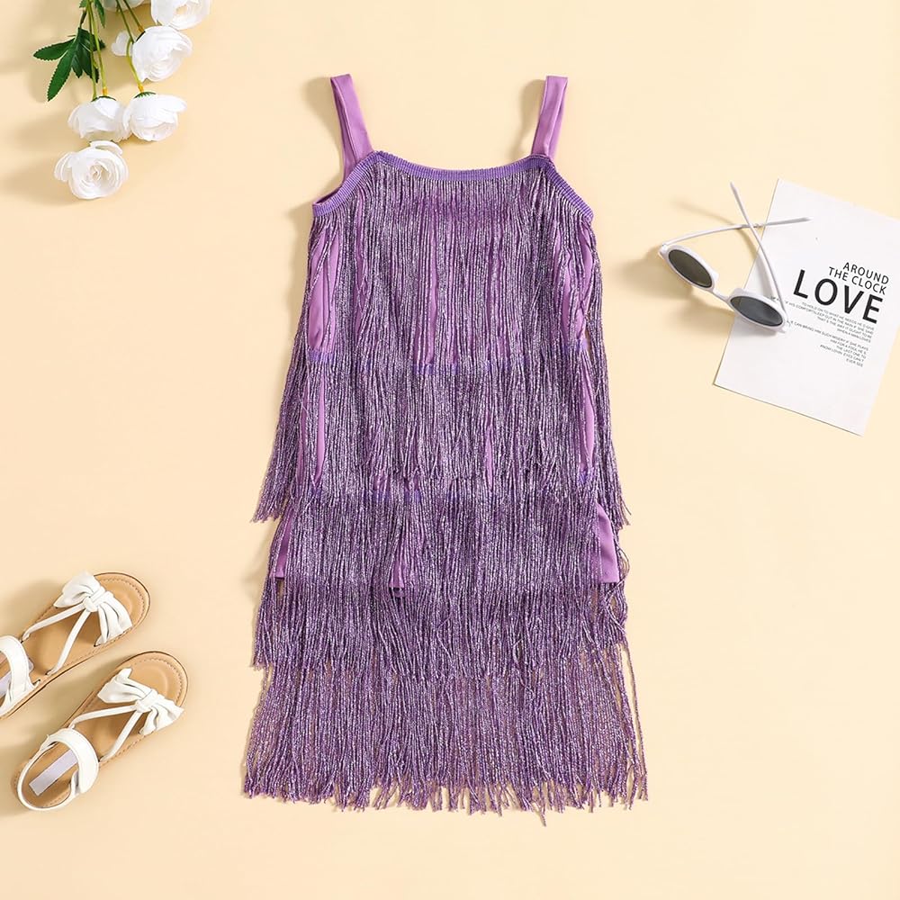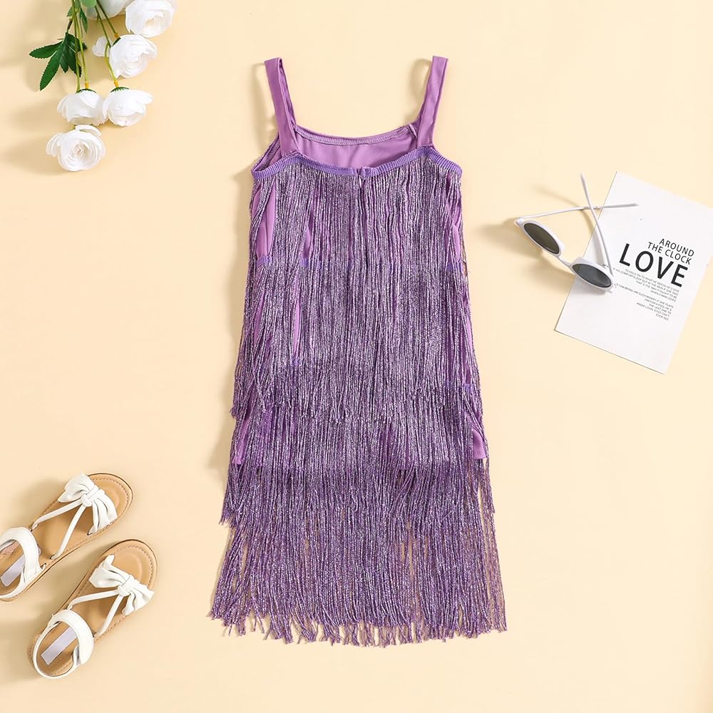 Toddler Kids Girls Sleeveless Sequin Fringe Dress Zip Back Little Girls Tasseled Sparkling Party Latin Dance Dress
