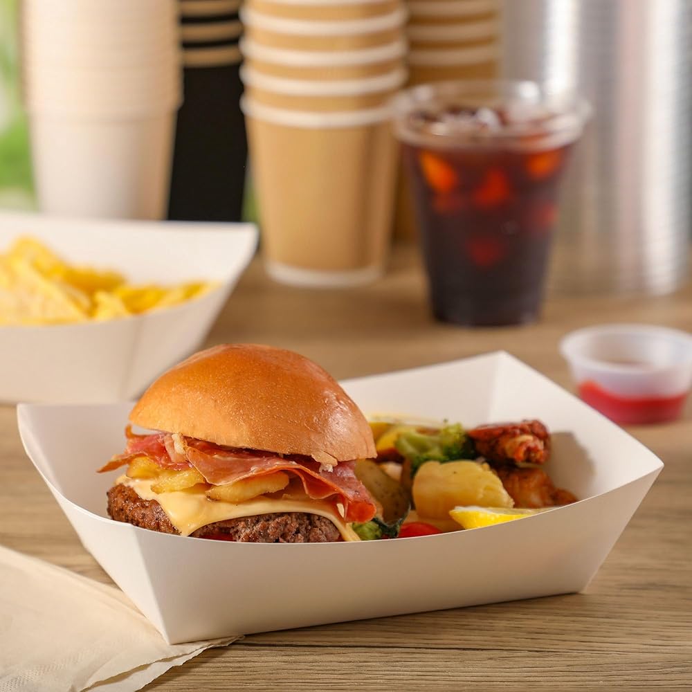 Classic Design: These rectangular paper food trays are designed with white color that will give your party or picnic that simple, classic feel that you and your guests will love. Bring that rustic feel to birthday parties, weddings, baby shower, carnivals, and more.