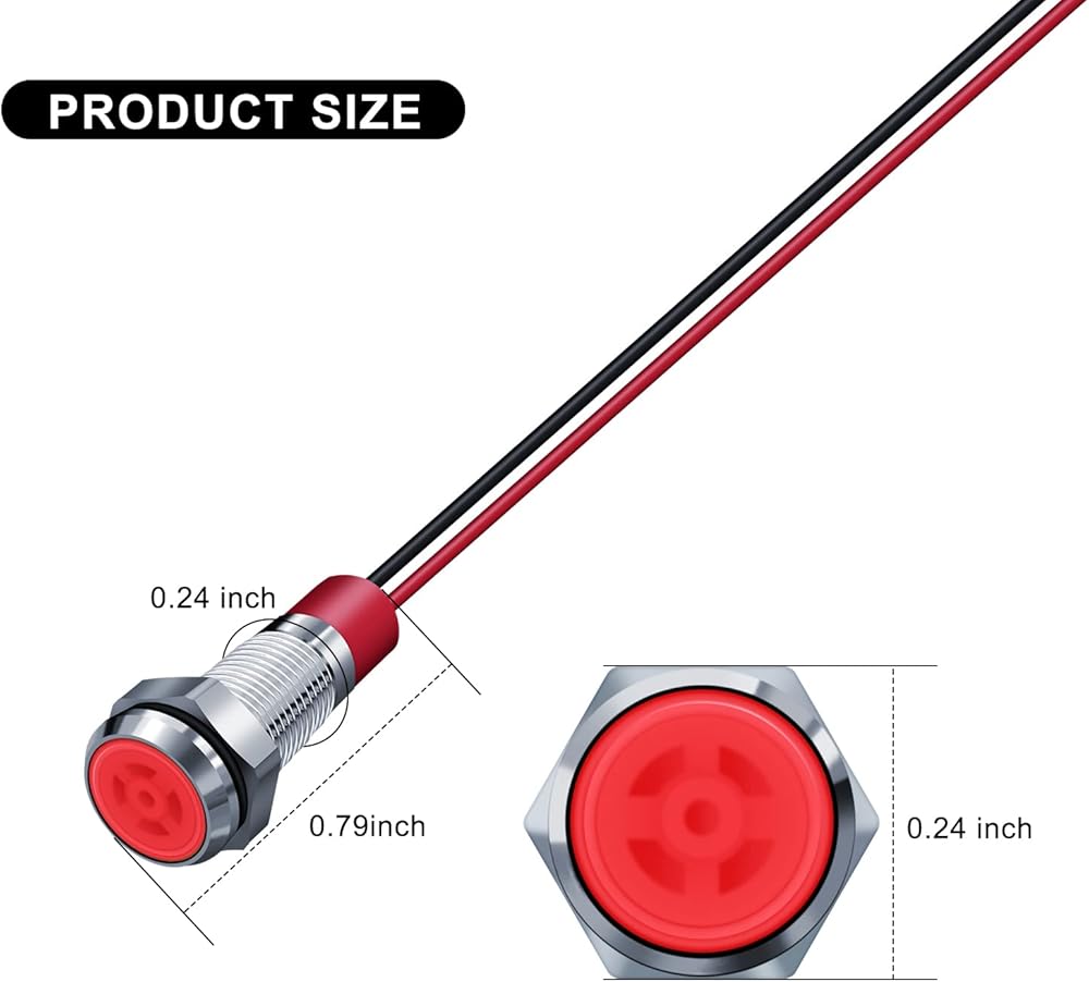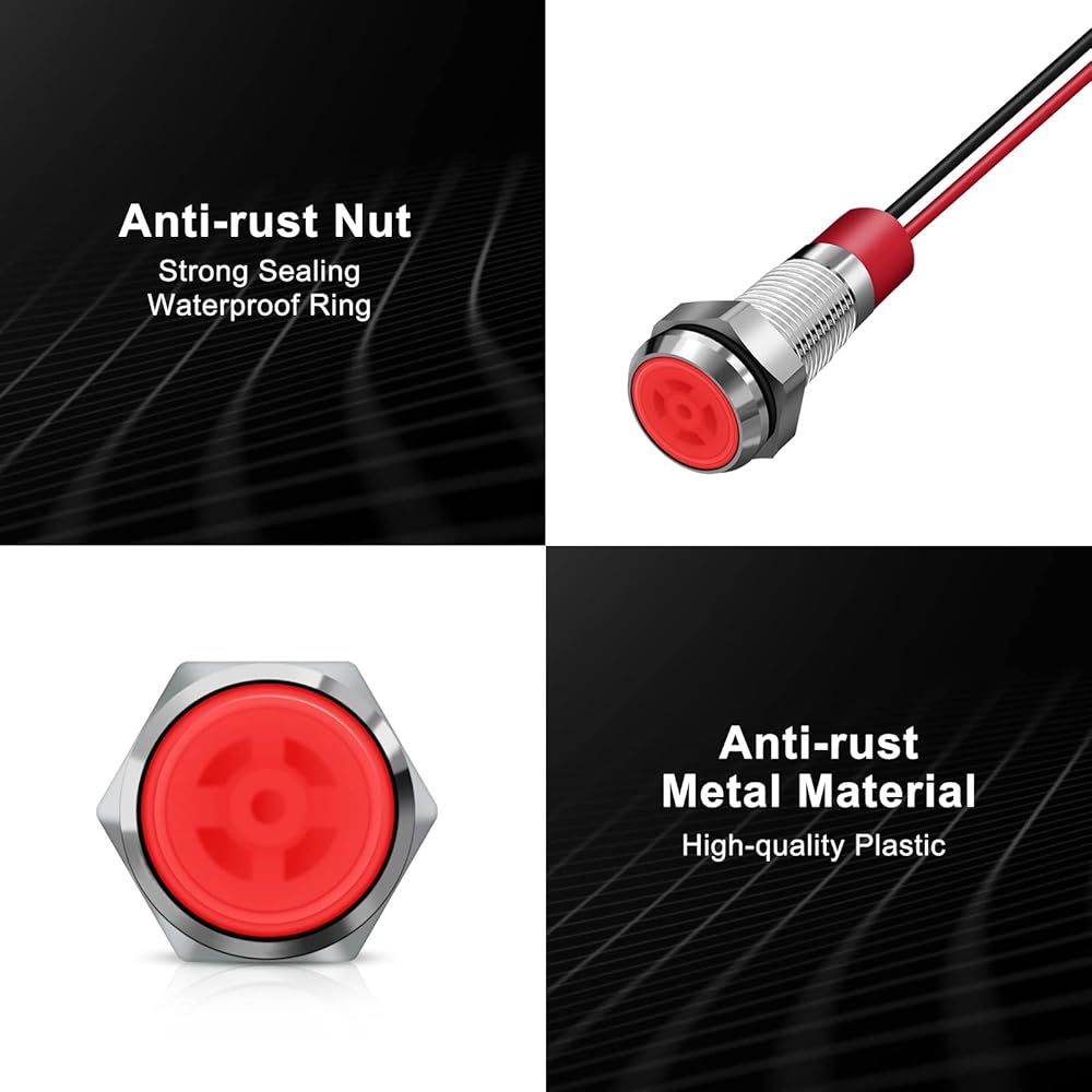 Super Bright Bead Light & Strong Conductivity: The Led indicator light has 1 built-in super bright Led bead light, and it's bright but not glare. The internal wire is made of pure copper & brass nickel-plated, with strong electrical conductivity.