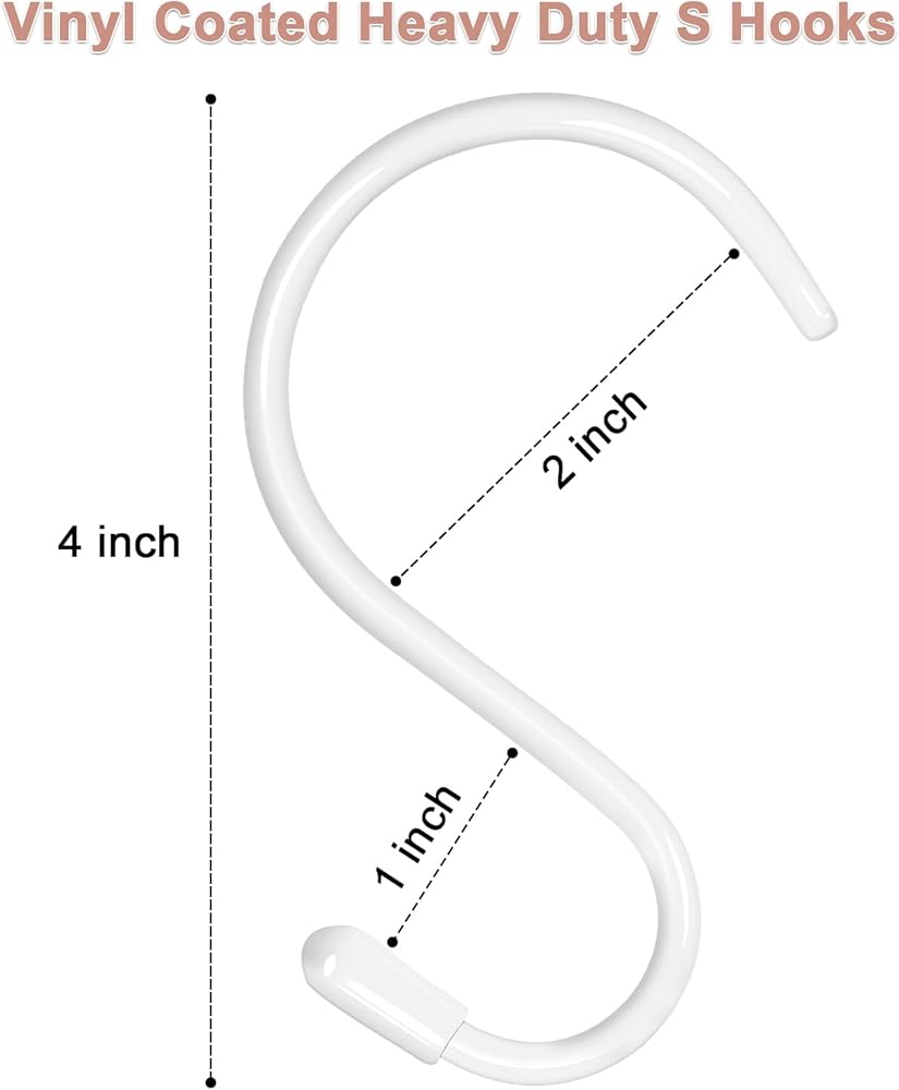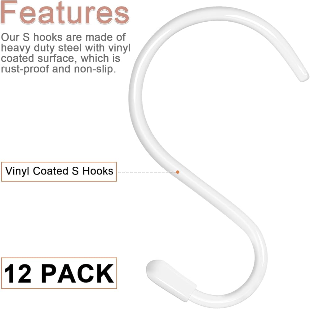 Package Include: Pack of 12 large vinyl coated heavy duty S hooks. If you are dissatisfied for any reason, we will provide 12-month money back or free replacement.